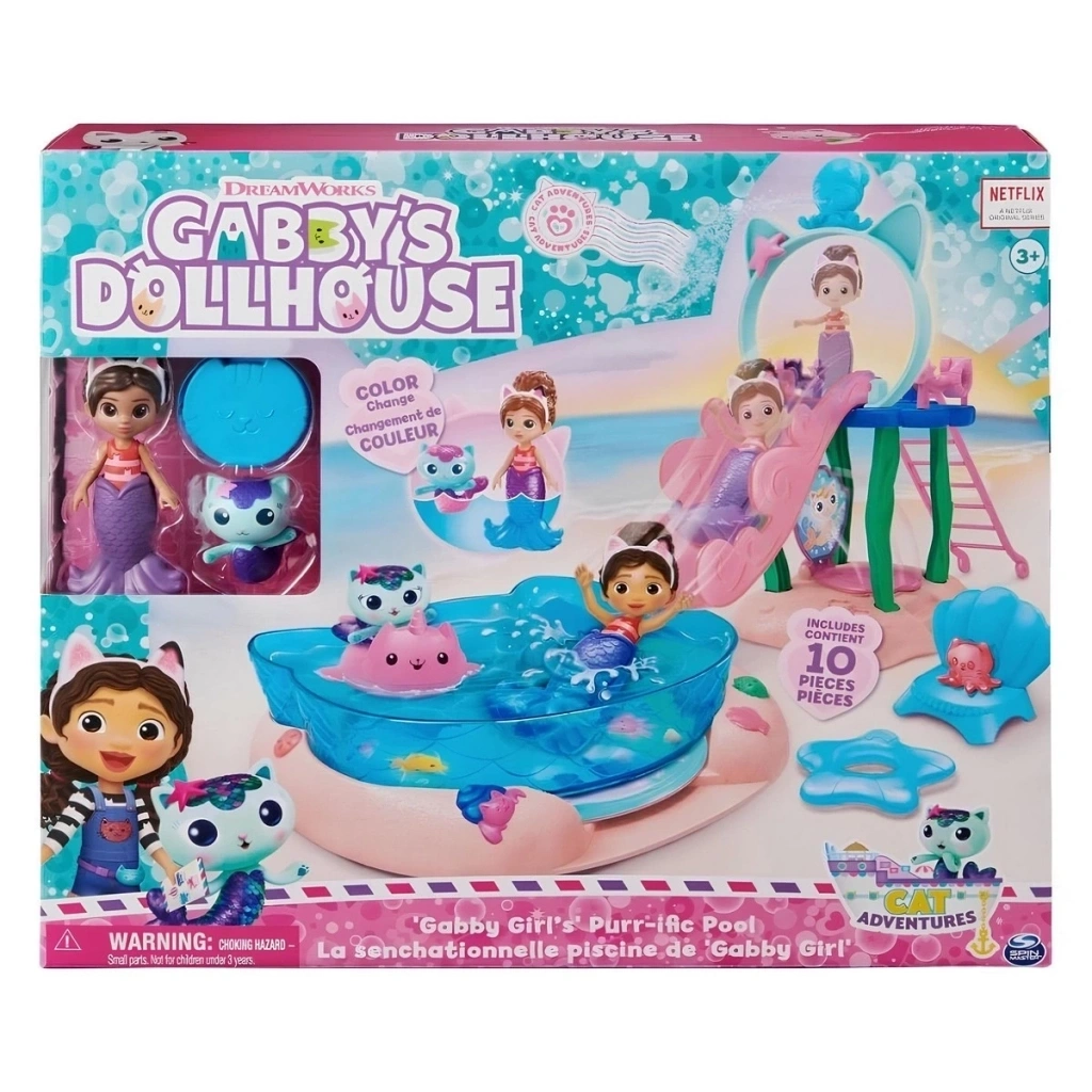Gabby ve Balık ile Gabby'nin Büyülü Ev Havuz Oyun Seti ile güneş altında kedi dostu eğlenceye hazır olun!