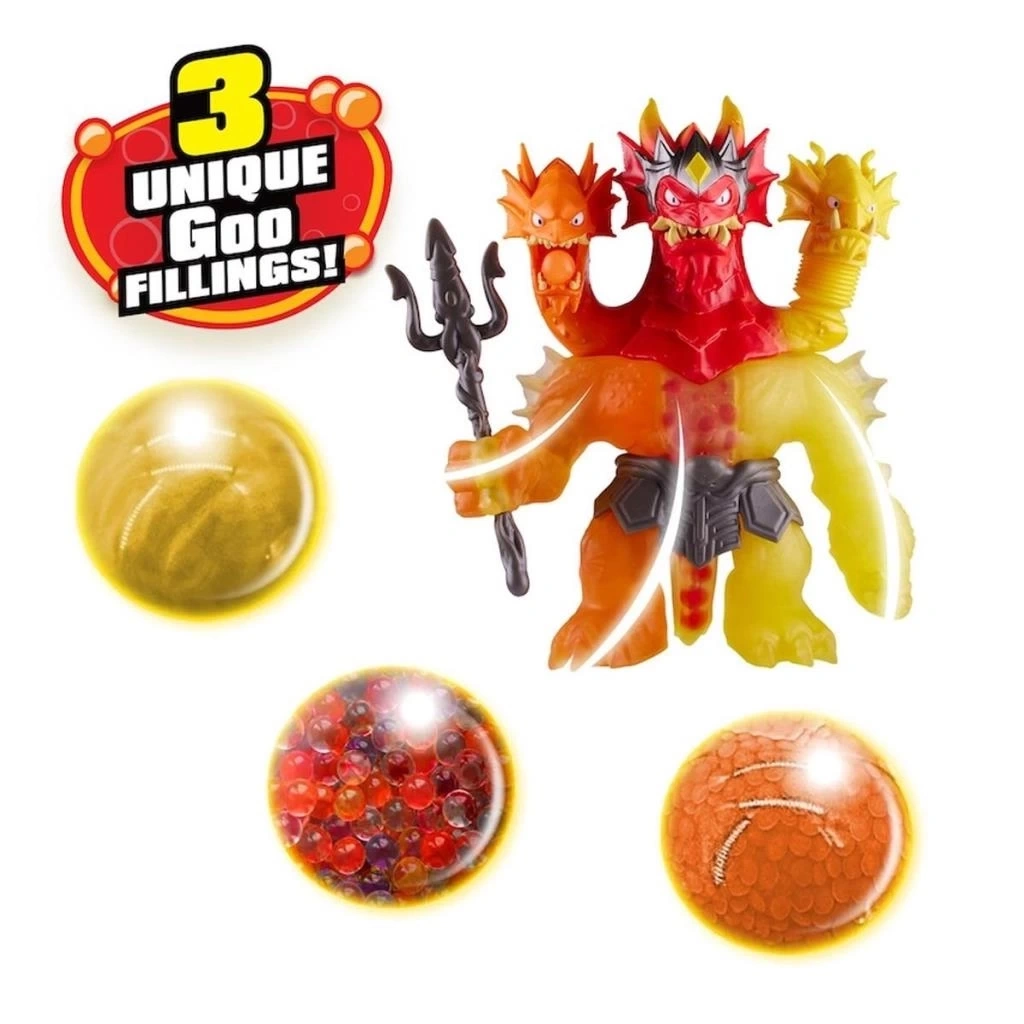 Goojitzu evreninin üç başlı devasa kral kahramanı King Hydra şimdi Stretch Strikers gücüyle buluştu! Stretch Strikers King Hydra yanardağlardaki lavların gücüyle donanmış yepyeni bir görünüme ve 3 gövdesinin her birinde çok özel 3 farklı dolguya sahip! Ağzından dolgulu bir top fırlatarak saldırabiliyor, ışıklar eşliğinde kükrüyor ve her bir kafası kendi büyüklüğünün tam üç katına kadar esneyebiliyor!