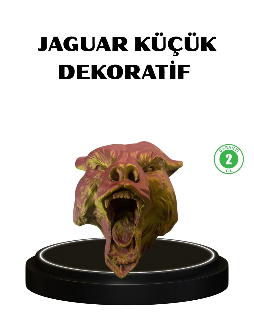 Gold-kırmızı tonlarında tasarlanan 3D Jaguar Başı, 20x16 cm boyutları ile hem kompakt hem etkileyici bir dekoratif duvar objesidir. Özel renk geçişleri sayesinde hem modern hem artistik bir görünüm sunar. Jaguar figürünün güçlü, hızlı ve karizmatik imajı dekorasyonda iddialı bir tarz yaratmak isteyenlerin vazgeçilmez tercihlerinden biridir.Ürün oldukça hafiftir ve kolay monte edilir. Duvarda tek başına odak noktası oluşturabileceği gibi, tablo ve diğer dekoratif aksesuarlarla kombinlenerek bir dekor konsepti de oluşturulabilir.Jaguar figürü; cesaret, hız, özgüven ve güç sembolü olarak anlam taşır. Bu nedenle hem estetik hem sembolik bir obje isteyenler için uygun bir dekor ürünüdür.Özellikle genç odaları, oyun odaları, stüdyolar, ofisler ve spor/gym ortamlarında oldukça şık durur. Gold-red parlak kaplaması sayesinde ışıkla birlikte farklı yansımalar oluşturur ve mekâna benzersiz bir atmosfer verir.Evinize ya da ofisinize güçlü bir karakter katacak modern ve sanatsal bir dekor arıyorsanız, bu özel jaguar başı tam size göre.