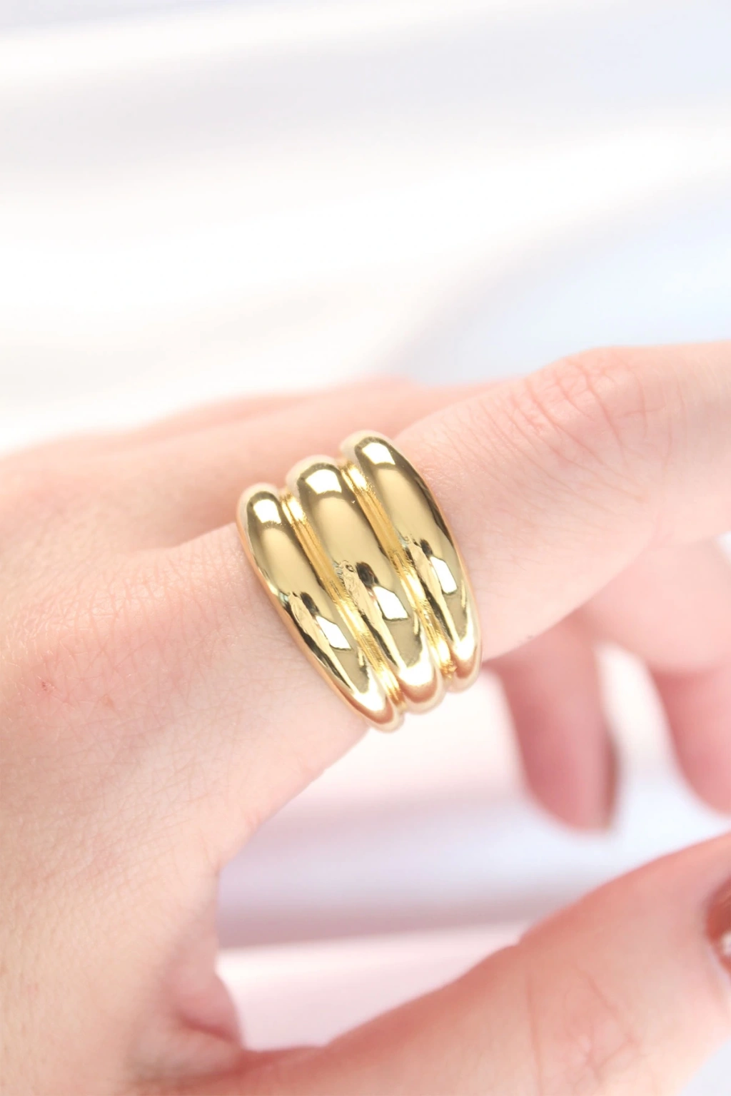BFS Gold Renk Ayarlanabilir Çizgili Bombe Yüzük