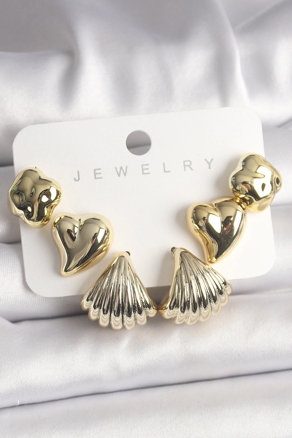 BFS Gold Renk Yonca Kalp Deniz Kabuğu Figür CCB Kadın Küpe Seti