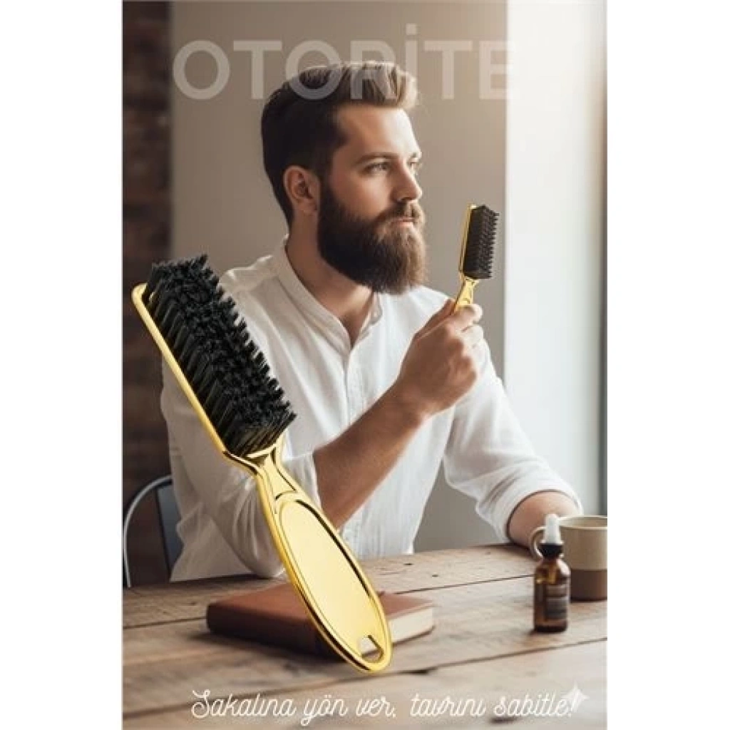 Altın renkli gövdesiyle hem şık hem güçlü, yoğun siyah kıllarıyla sakalına şekil verirken kabarmayı önler. Anti-statik yapısı sayesinde elektriklenme yapmaz, ergonomik tutuşuyla her yüz hattına uyum sağlar. Berber kalitesini evine taşıyan bu fırça, stilini sabitlemenin en pratik yolu.