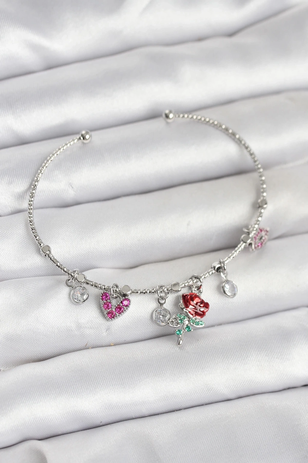 BFS Gül Charmlı Gümüş Renk Pirinç Kadın Bileklik