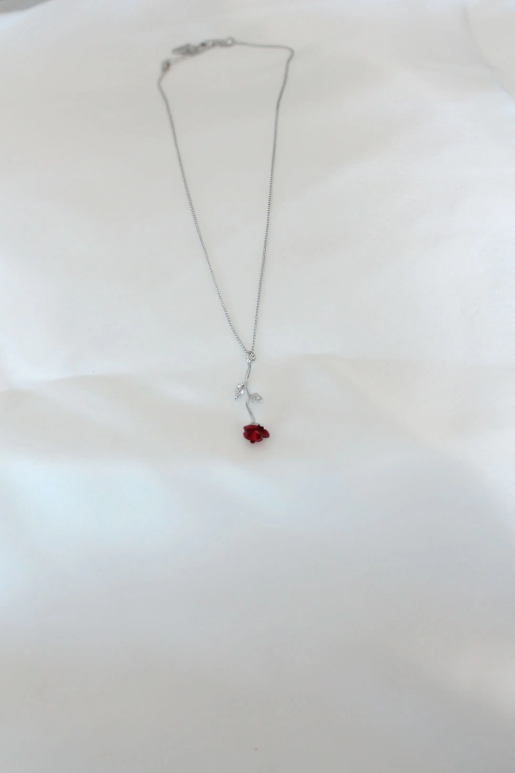 BFS Gümüş Kaplama Kırmızı Gül Figürlü Kadın Kolye
