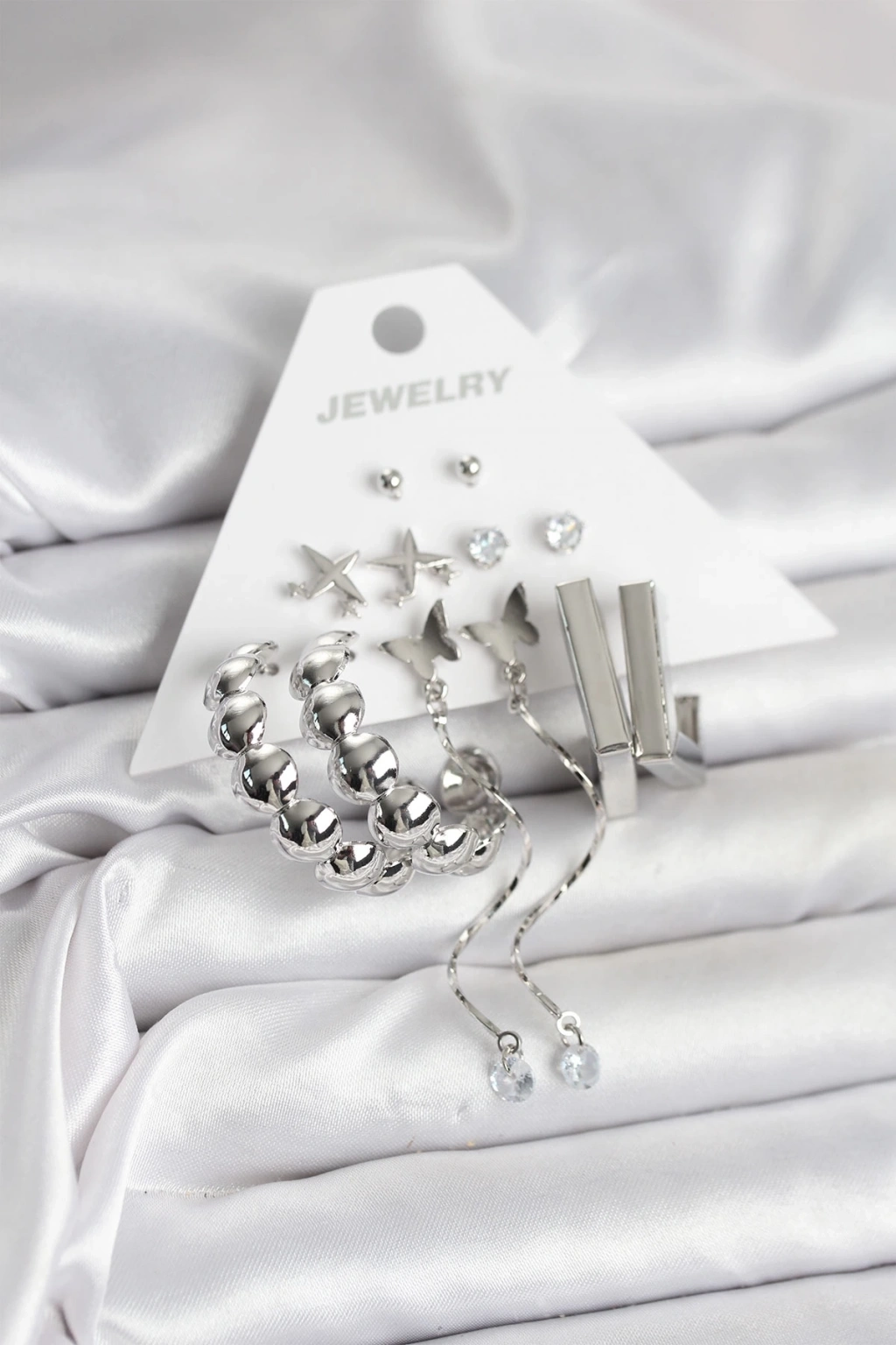 BFS Gümüş Renk Pirinç 6'lı Kadın Küpe Seti