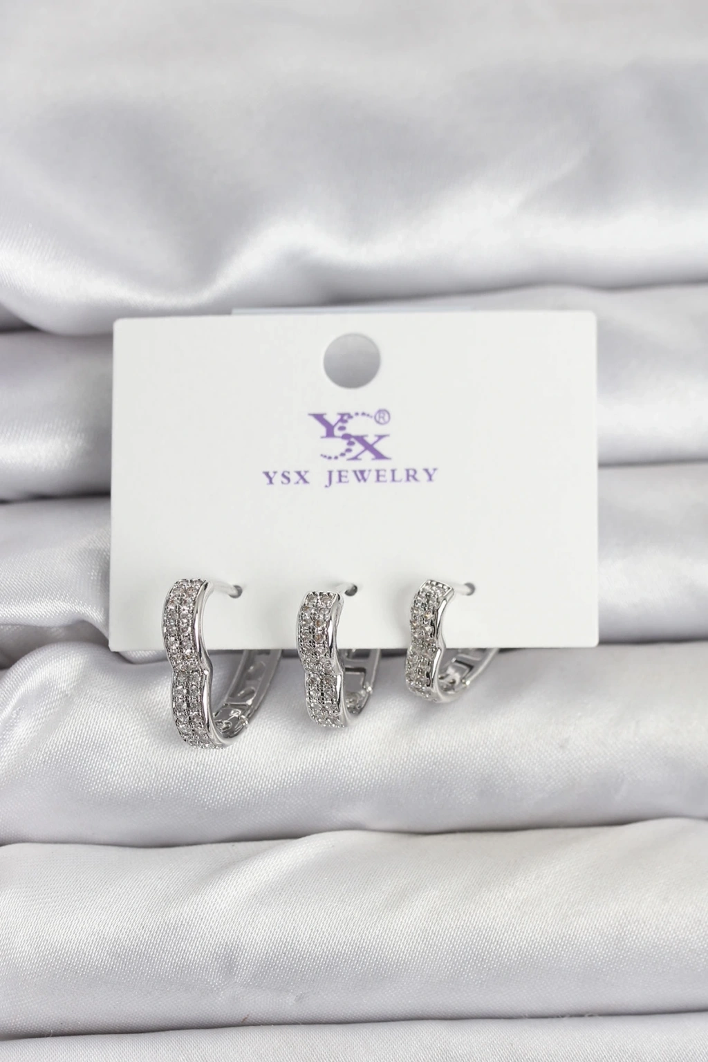 BFS Gümüş Renk Pirinç Zirkon Taşlı Kalpli Kadın Küpe