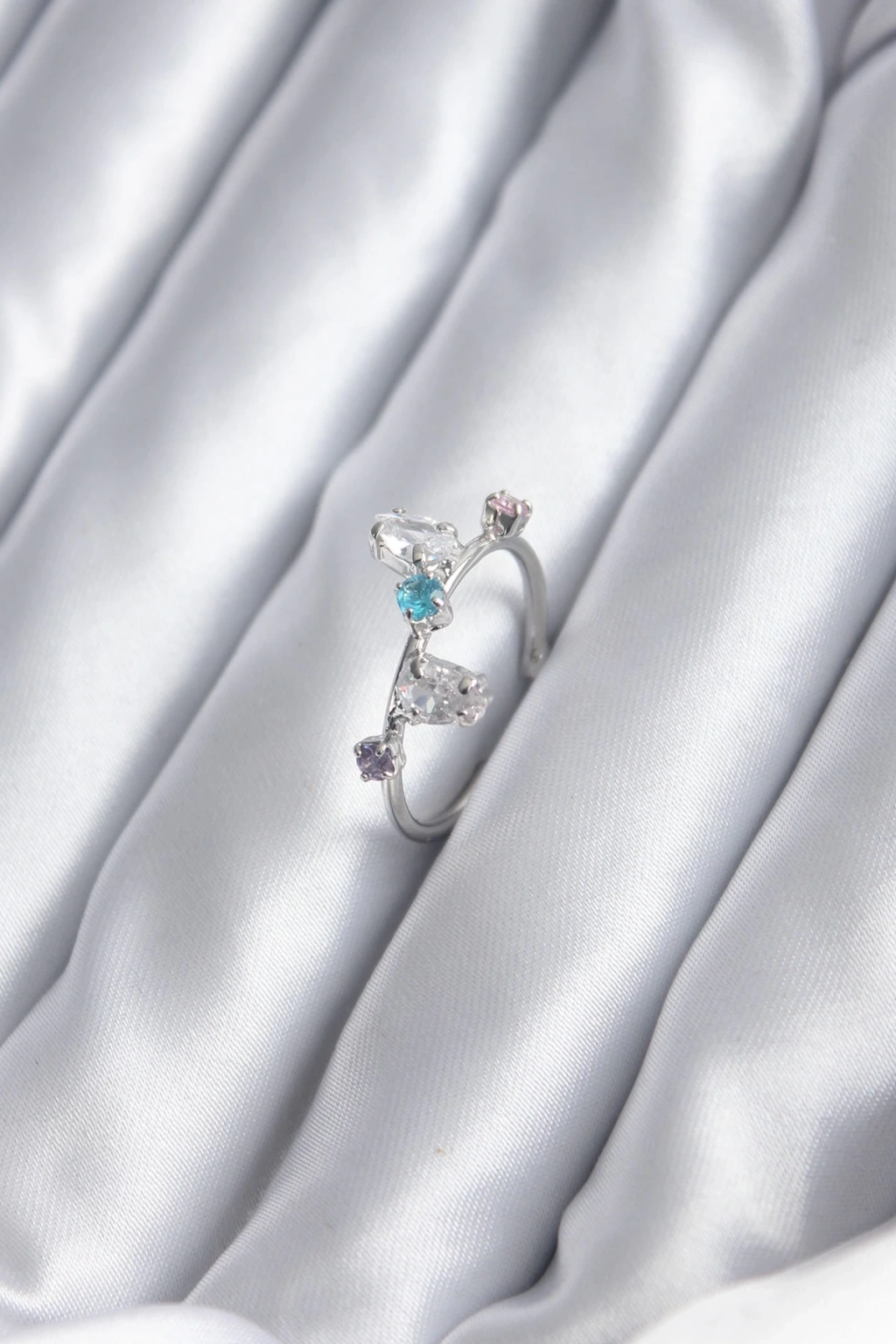 BFS Gümüş Renk Renkli Zirkon Taşlı Kadın Yüzük