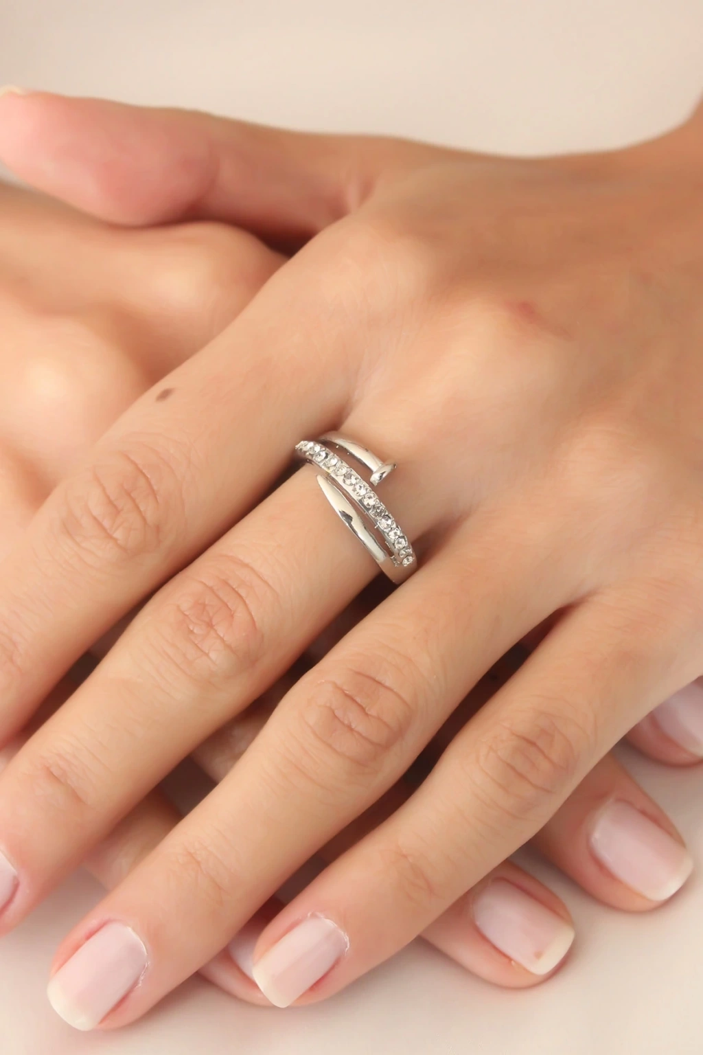 BFS Gümüş Renk Taşlı Çivi Ayarlanabilir Kadın Yüzük