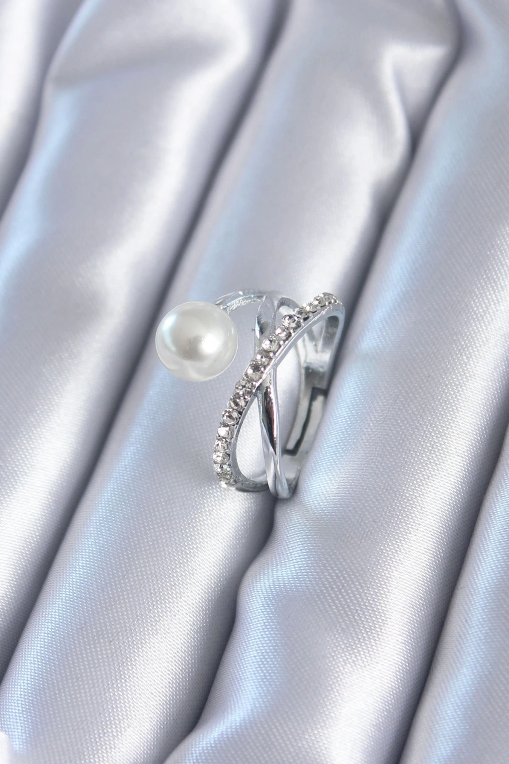 BFS Gümüş Renk Zirkon Taşlı İncili Kadın Yüzük