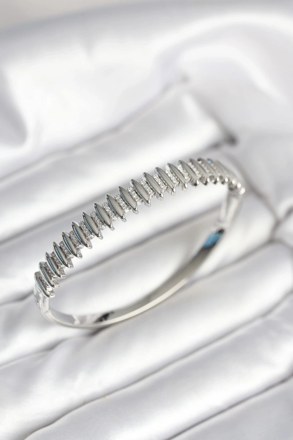 BFS Gümüş Renk Zirkon Taşlı Pirinç Kadın Kelepçe
