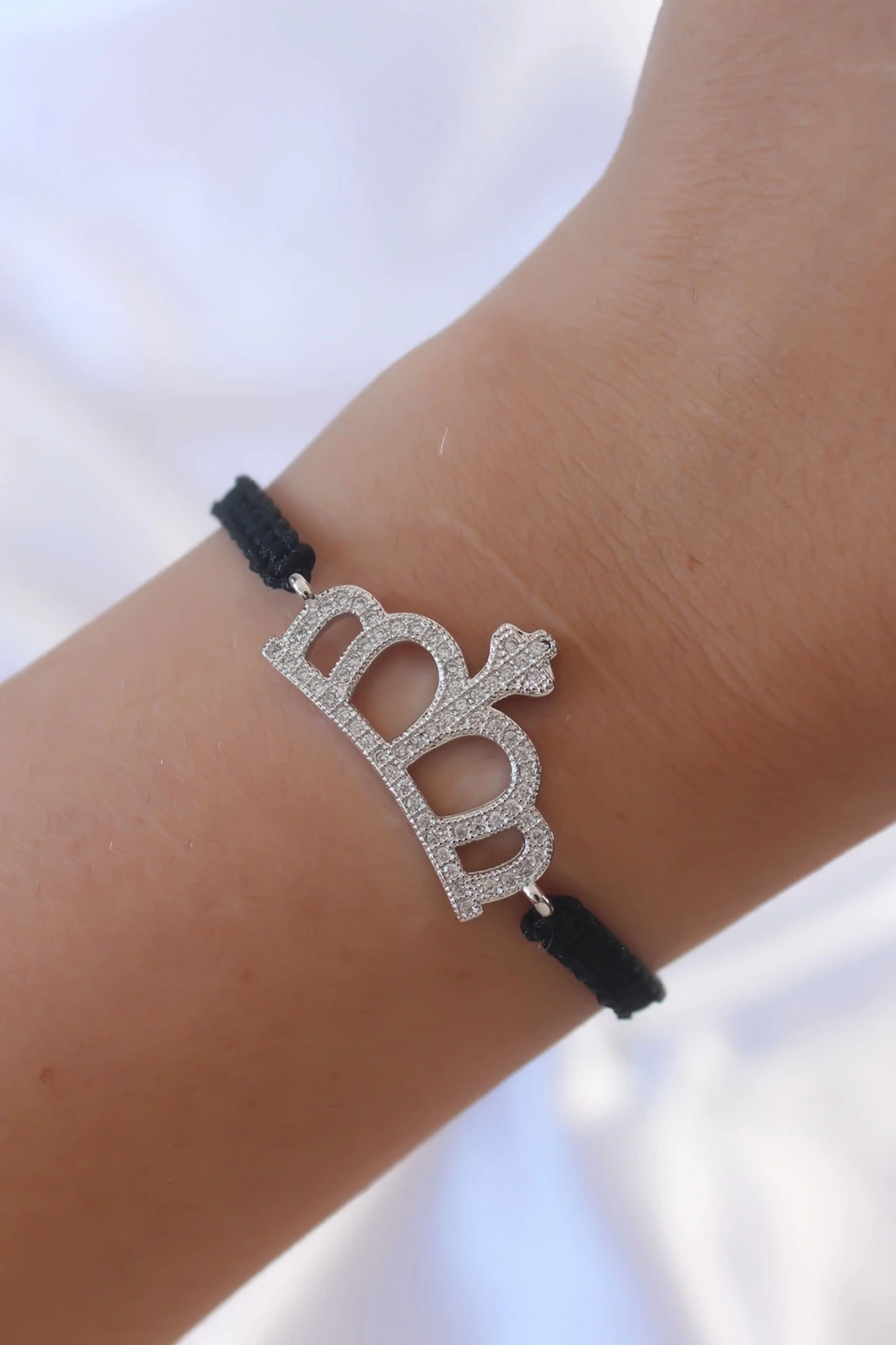 BFS Gümüş Renk Zirkon Taşlı Taç Figür Makrome Bileklik