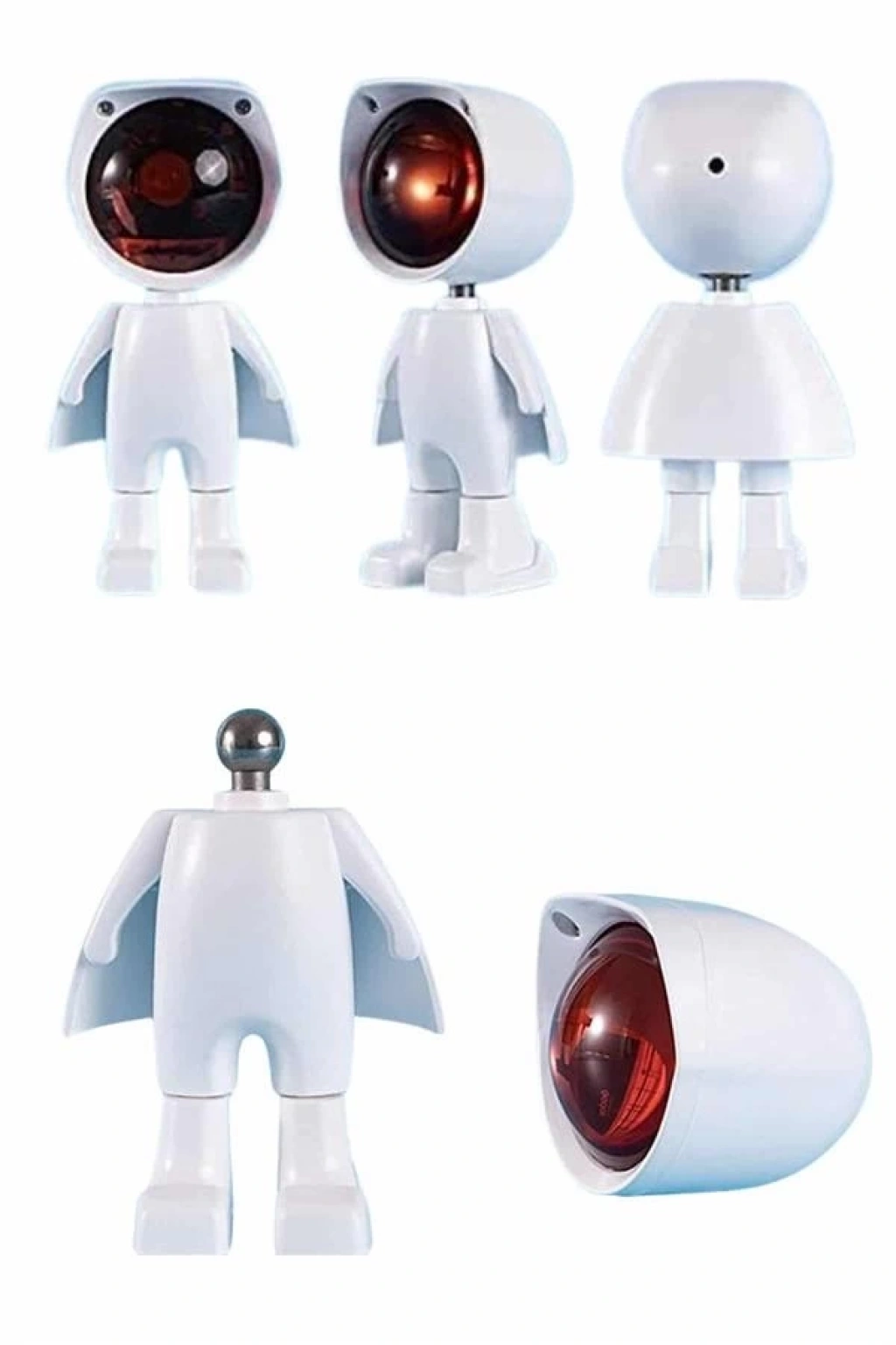 Bu gün batımı efektli dekoratif lamba, sevimli astronot tasarımıyla yalnızca bir aydınlatma aracı değil, aynı zamanda bulunduğu ortama karakter katan şık bir obje olarak öne çıkar. Gün batımı ışık tonlarıyla mekanlara sıcaklık ve romantizm katan bu lamba, özellikle estetik detaylara önem veren kullanıcılar için tasarlanmıştır. Minimalist boyutları sayesinde ister evde ister dış mekânda kolaylıkla kullanılabilir.Işık kaynağı olarak kullanılan 5 Watt’lık LED, enerji tasarrufuyla birlikte uzun ömürlü ve göz yormayan yumuşak bir aydınlatma sunar. Lamba kafasının 360 derece yatay ve 60 derece dikey hareket edebilmesi, ışığın yönünü ihtiyacınıza göre özgürce ayarlayabilmenizi sağlar. Böylece ister tavanı ister bir duvarı yumuşak bir gün batımı tonuna bürüyebilir, ister kitap okurken odaklı bir ışık elde edebilirsiniz.Dokunmatik kontrol paneli, kullanım kolaylığı sağlayarak lambayı açma, kapama ve parlaklık ayarı yapma imkânı tanır. Aynı zamanda şarjlı kullanım özelliği sayesinde priz bağımlılığını ortadan kaldırır; tam dolu batarya ile 3-4 saate kadar kesintisiz ışık sunar. USB kablosu ile kolayca şarj edilir ve kullanıma hazır hale gelir.Sadece ev içinde değil, seyahatlerde, kamp etkinliklerinde ya da fotoğraf ve video çekimlerinde de kullanılabilecek şekilde tasarlanmış olan bu ürün, yaratıcı ışık efektleriyle fotoğraflarınıza benzersiz bir hava katabilir. Özellikle yatak odası, oturma odası ya da çalışma alanlarında hem şıklık hem de işlevsellik isteyen kullanıcılar için ideal bir seçenektir.Gece lambası olarak da kullanılabilen bu astronot temalı ışık, huzur veren tonlarıyla uykuya geçişi kolaylaştırır. Romantik ambiyanslar yaratmak isteyenler için mükemmel bir atmosfer sağlayan bu ürün, hediye alternatifi olarak da oldukça dikkat çekici ve anlamlıdır.