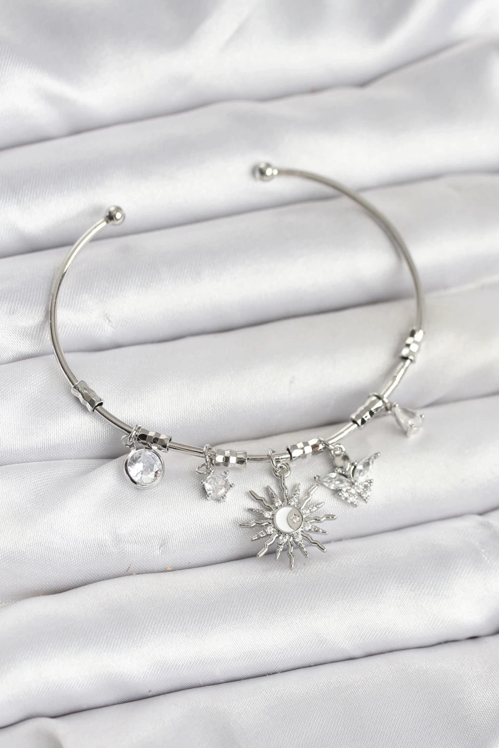 BFS Güneş Charmlı Gümüş Renk Pirinç Kadın Bileklik
