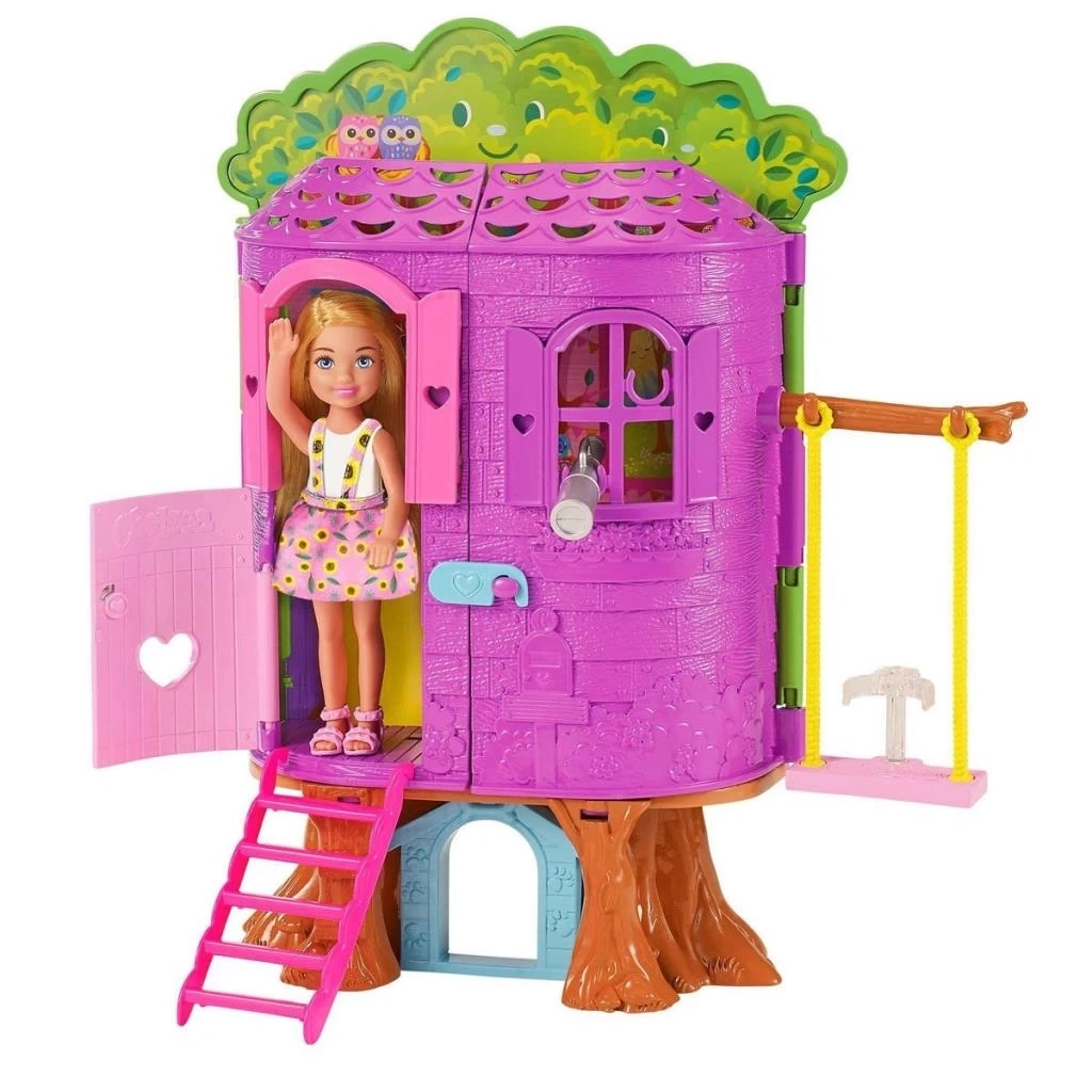 Ağaç evden esinlenilerek tasarlanan bu Barbie® Chelsea™ oyun setiyle çocuklar ağaçların tepesindeki dünyada eğlenceye ve maceraya doyacak. Bu oyun setinde setten çıkan Chelsea™ bebek için hikaye anlatımını güçlendiren 10'dan fazla parça ve beş farklı oyun alanı bulunur.