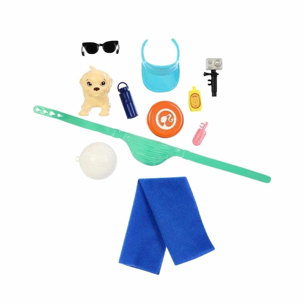 Diğer aksesuarlar arasında bel çantası, havlu, frizbi, güneş gözlüğü, siperlik, su şişesi, güneş koruyucu losyon, spor kamerası, saat, top ve buzlu şeker bulunur.