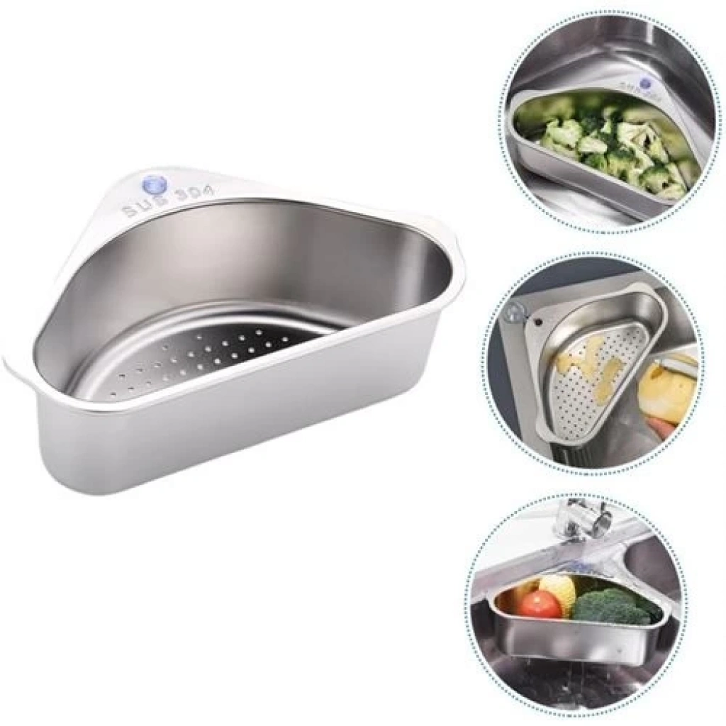 Inox Lavabo Köşe Süzgeci Organizer – 304 Paslanmaz Çelik Mutfak Süzgeci (721520)