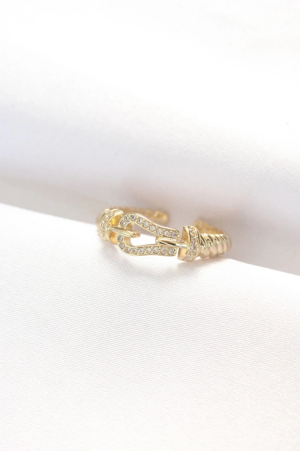 BFS Kemer Tokası Tasarımlı Gold Renk Zirkon Taşlı Ayarlanabilir Yüzük