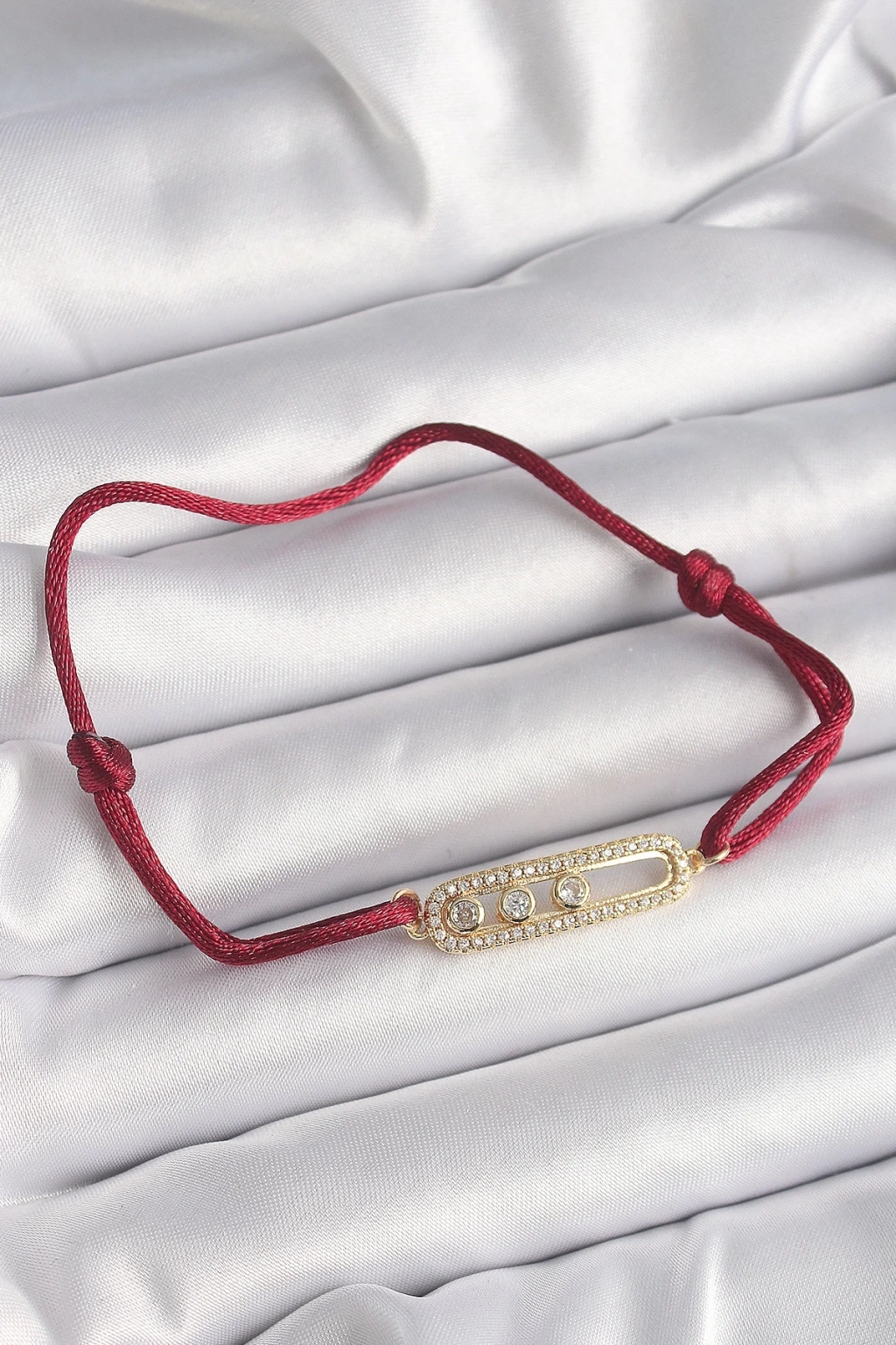 BFS Kırmızı İpli Asansörlü Zirkon Taşlı Gold Messika Model Kadın Bileklik