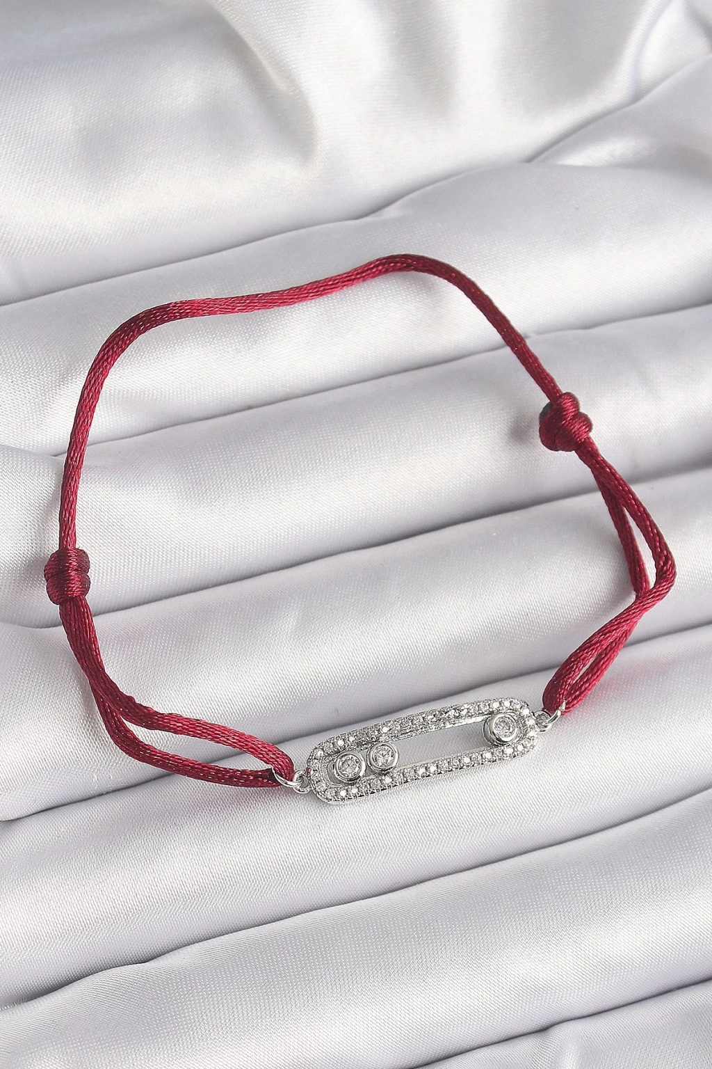 BFS Kırmızı İpli Asansörlü Zirkon Taşlı Gümüş Messika Model Kadın Bileklik