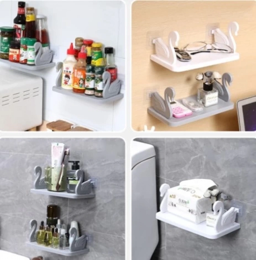 Kuğu tasarım pratik kozmetik kendinden yapışkanlı duvara monte edilen organizatör depolama rafı