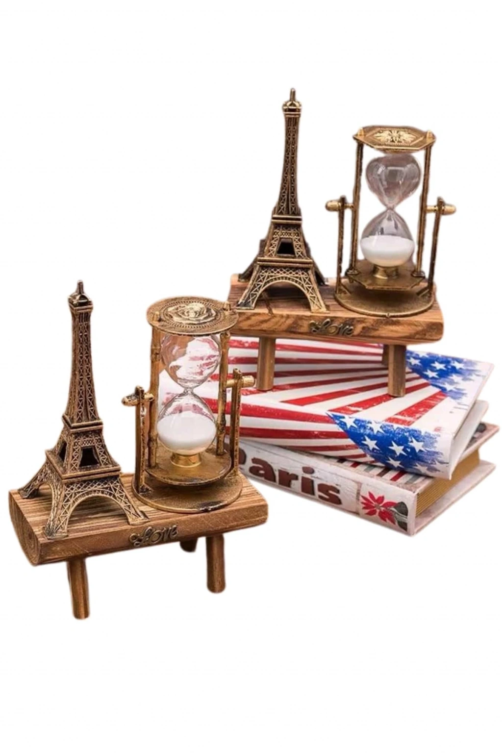Demir Kule Temalı Dekoratif TasarımBu özel tasarım kum saati, dünyaca ünlü Demir Kule siluetiyle süslenmiştir ve her detayında zarif işçilik hissedilir. Klasik ve vintage tarzı benimseyenler için mükemmel bir dekoratif obje olmasının yanı sıra, nostaljik bir hava katmak isteyenler için de harika bir seçimdir. Şık metal çerçevesi ve dayanıklı cam bölmesi sayesinde, hem ev hem de ofis ortamlarında kullanım için uygundur. Çalışma masaları, kitaplıklar, sehpa üstleri veya vitrinlerde sergilendiğinde ortama sofistike bir hava katar.