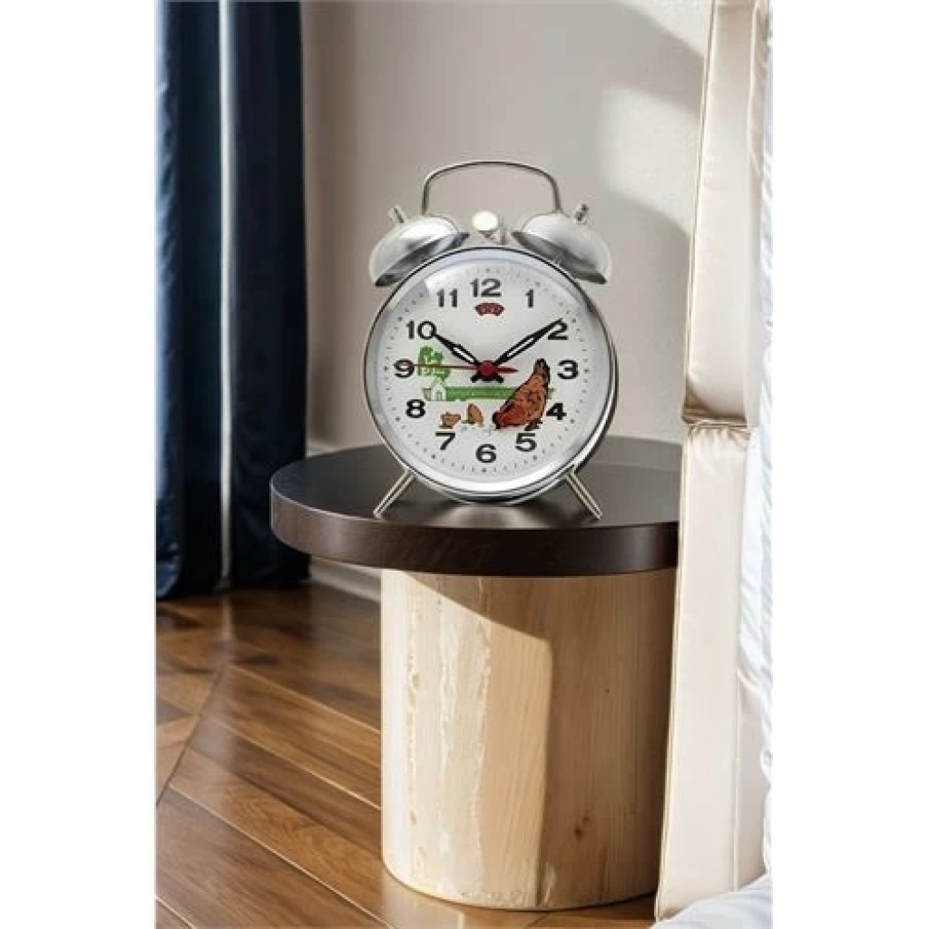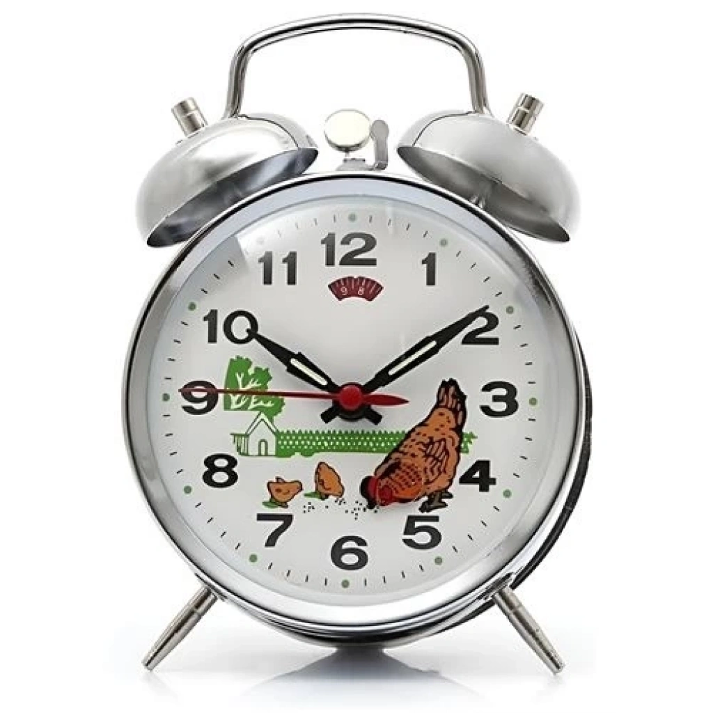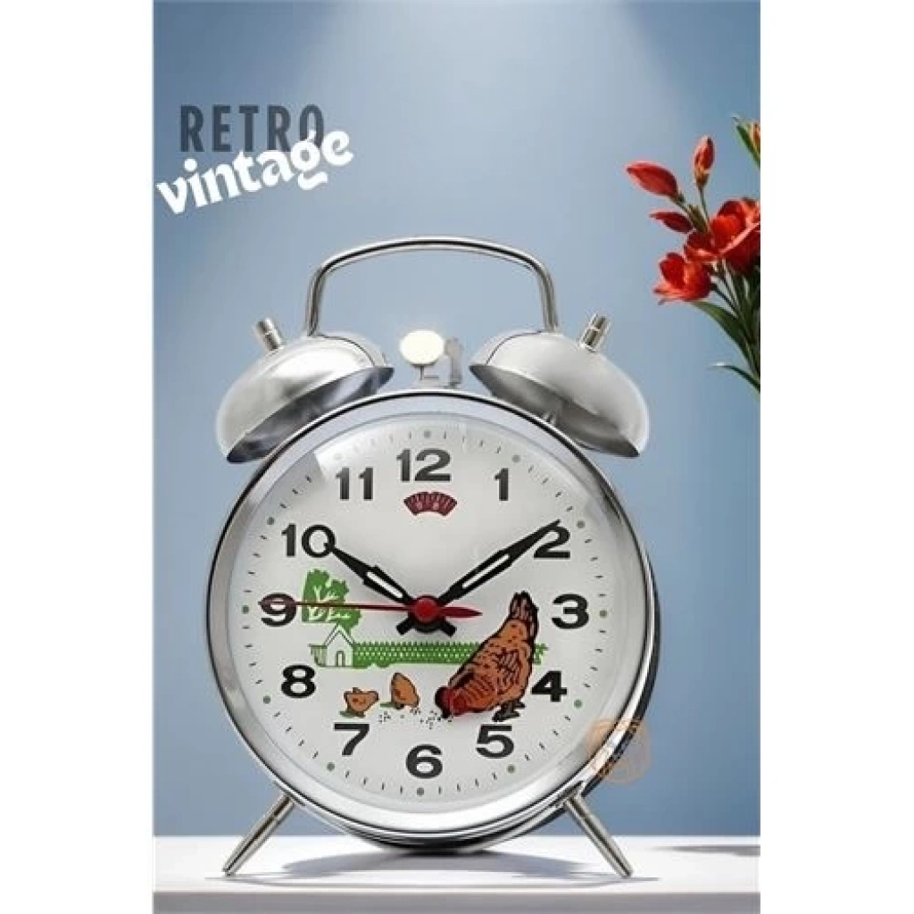 Retro vintage tasarımı ile kadrandaki tavuk, saniyeyle orantılı yemini yer .