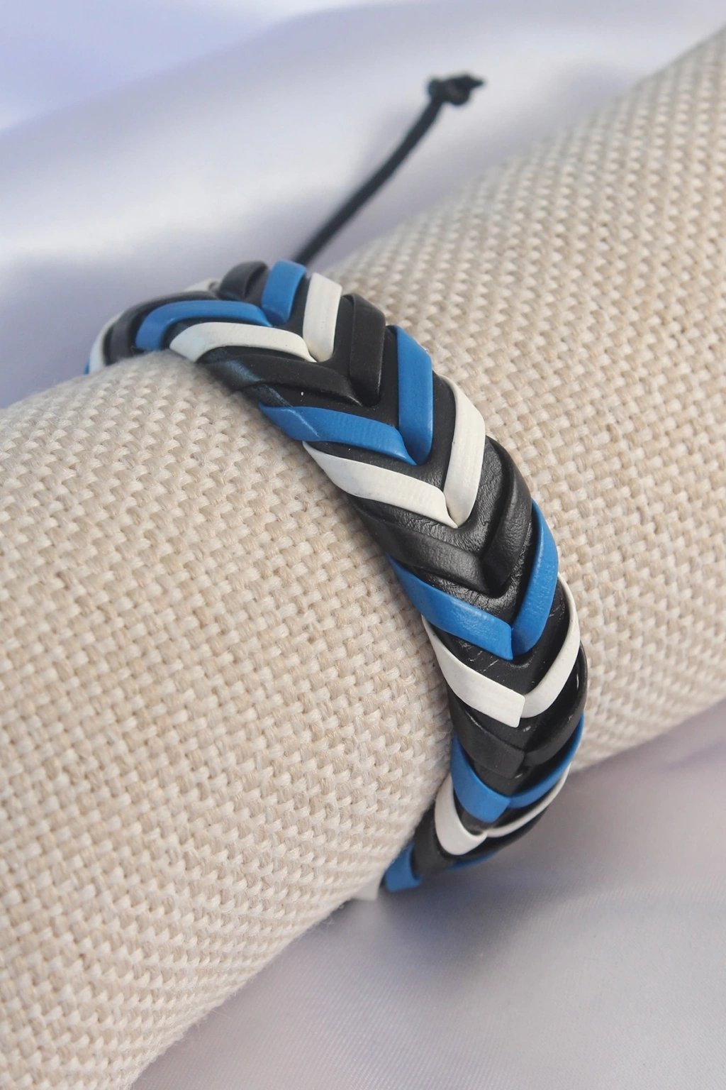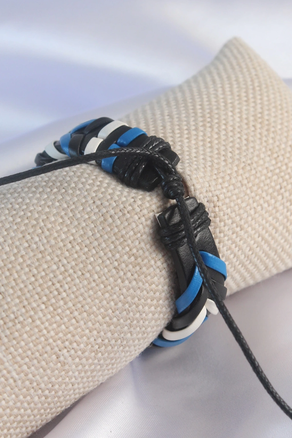 BFS Mavi Beyaz Renk Siyah Deri İpli Erkek Bileklik