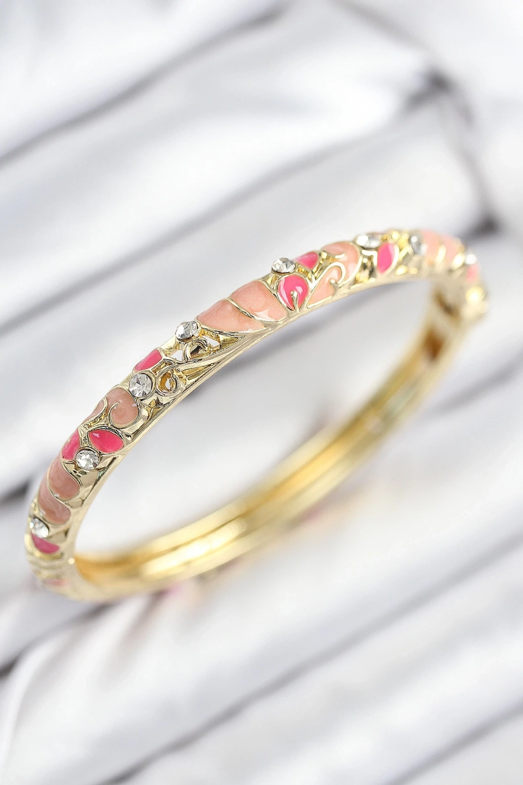 BFS Mineli Pirinç Zirkon Taşlı Pembe Çiçek Motifli Gold Kadın Kelepçe