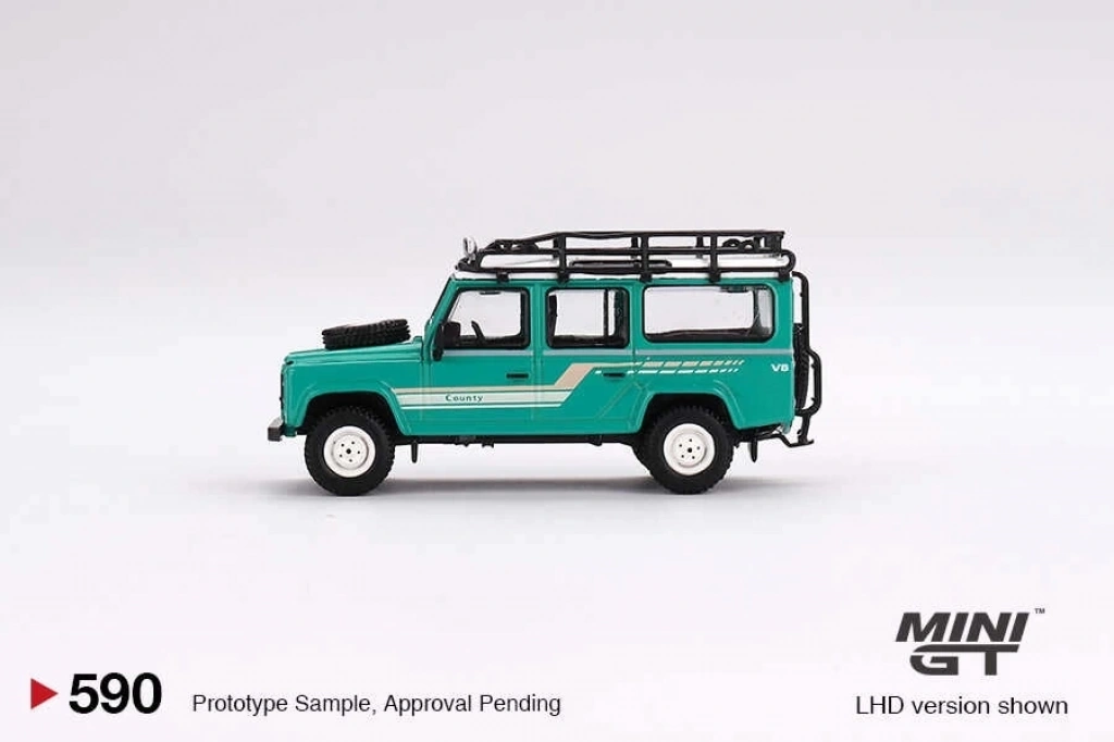 Mini GT 1/64 Land Rover Defender 110 1985 County Station Wagon Trident Green