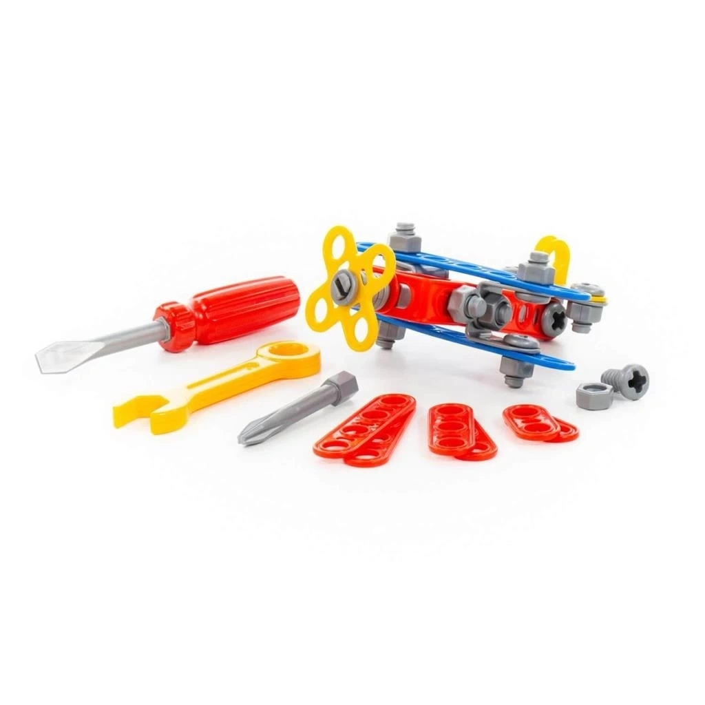 Tasarım parçası "Mucit"in (57 element), kutu içerisindeki cıvataları ve somunları tornavida yardımı ile bir araya getirilir. Ayrıca kutu içerisinde, ambalaj üzerindeki modelleri yapabilmek için ayrıntılı talimatların yazılığı olduğu bir kağıt bulunmaktadır.