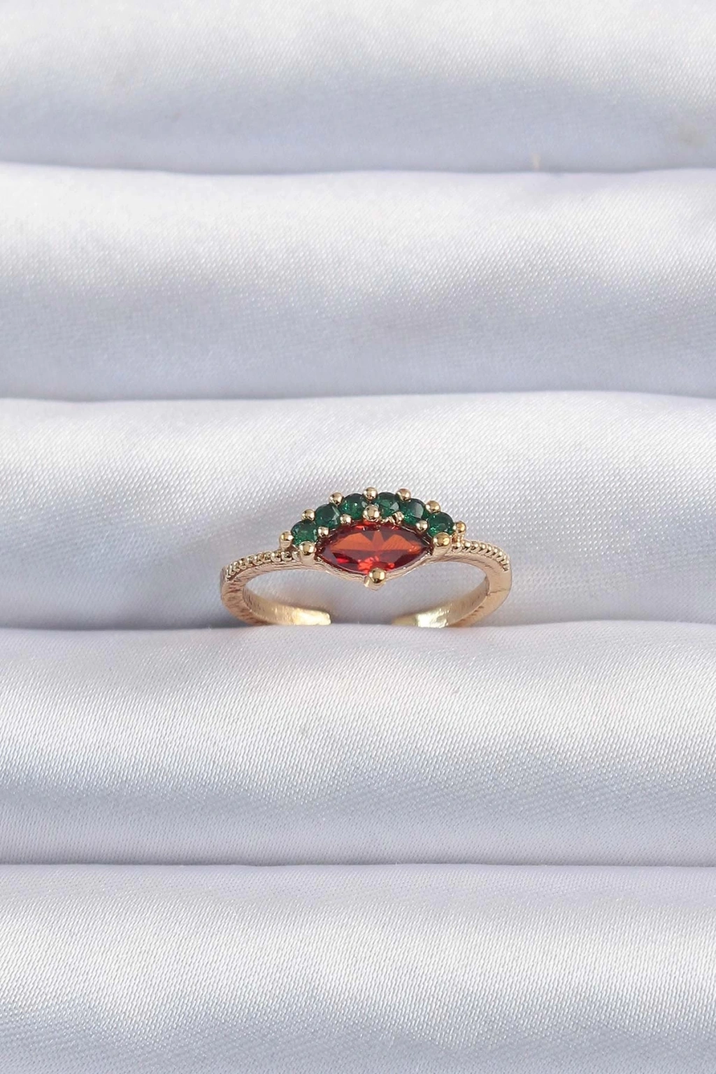 BFS Pirinç Altın Renk Renkli Zirkon Taşlı Ayarlanabilir Karpuz Model Yüzük