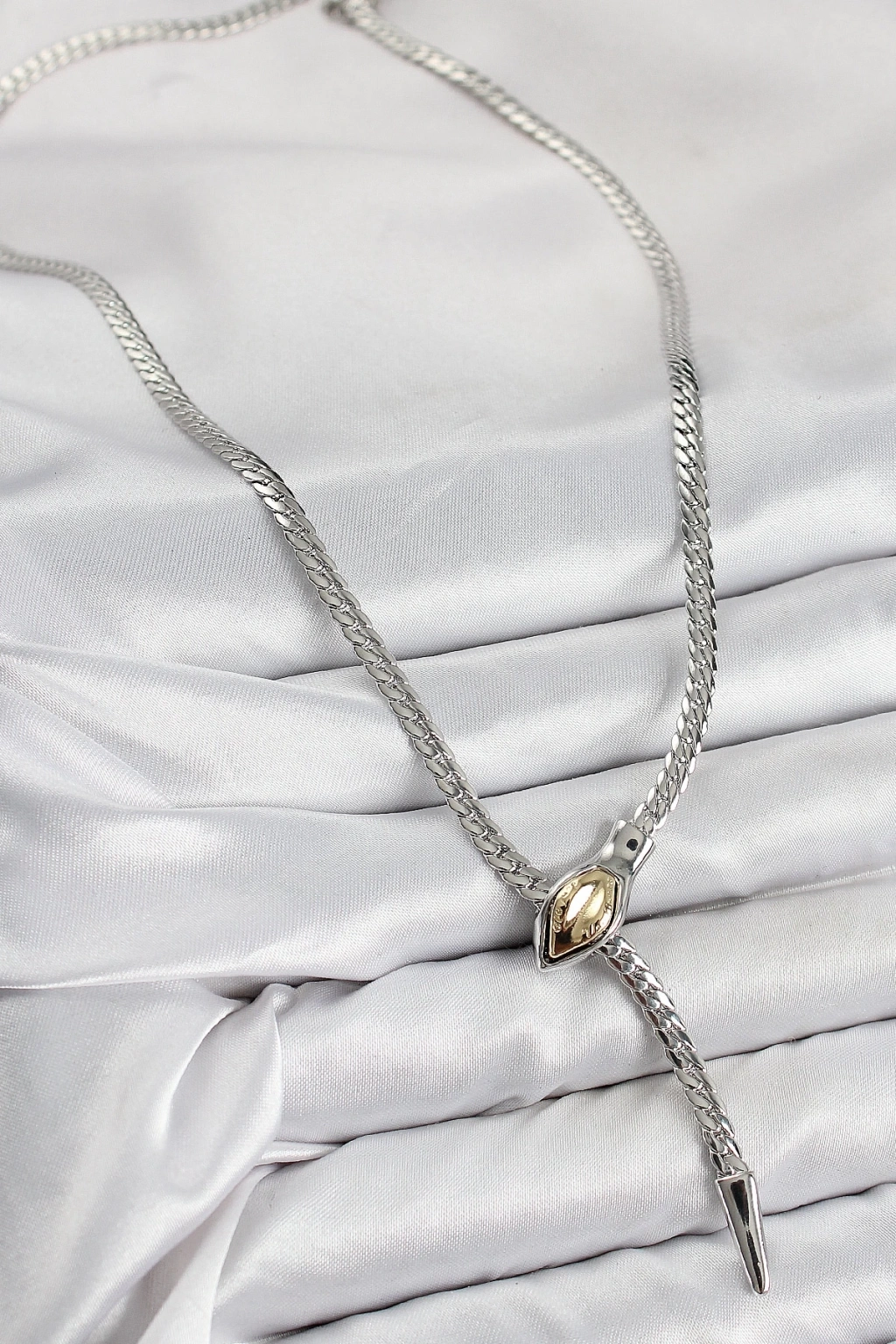BFS Pirinç Asansörlü Yılan Model Gümüş Renk Kadın Kolye