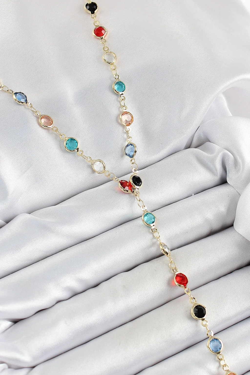 BFS Pirinç Asorti Model Gold Renk Zirkon Taşlı Y Kolye