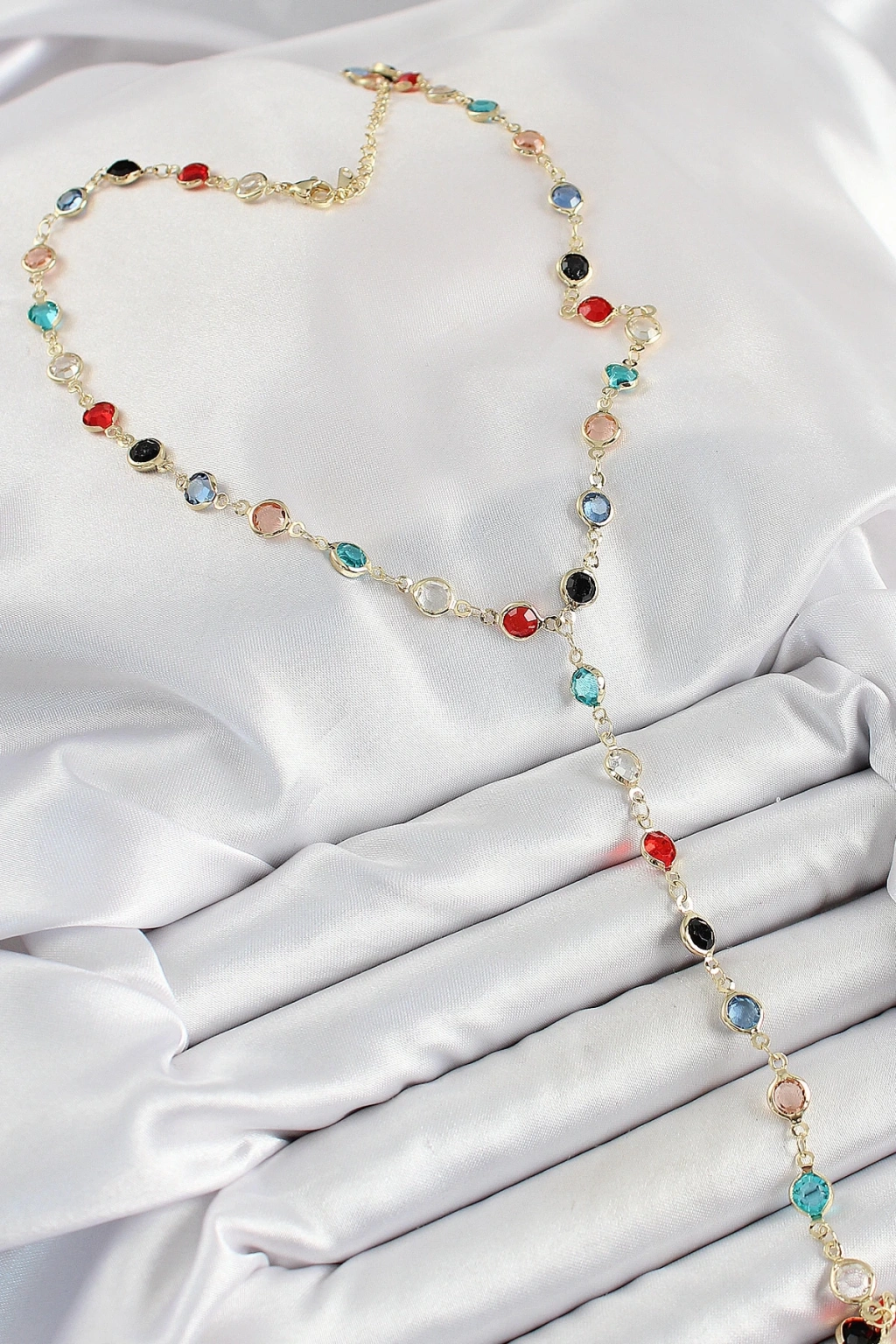 BFS Pirinç Asorti Model Gold Renk Zirkon Taşlı Y Kolye