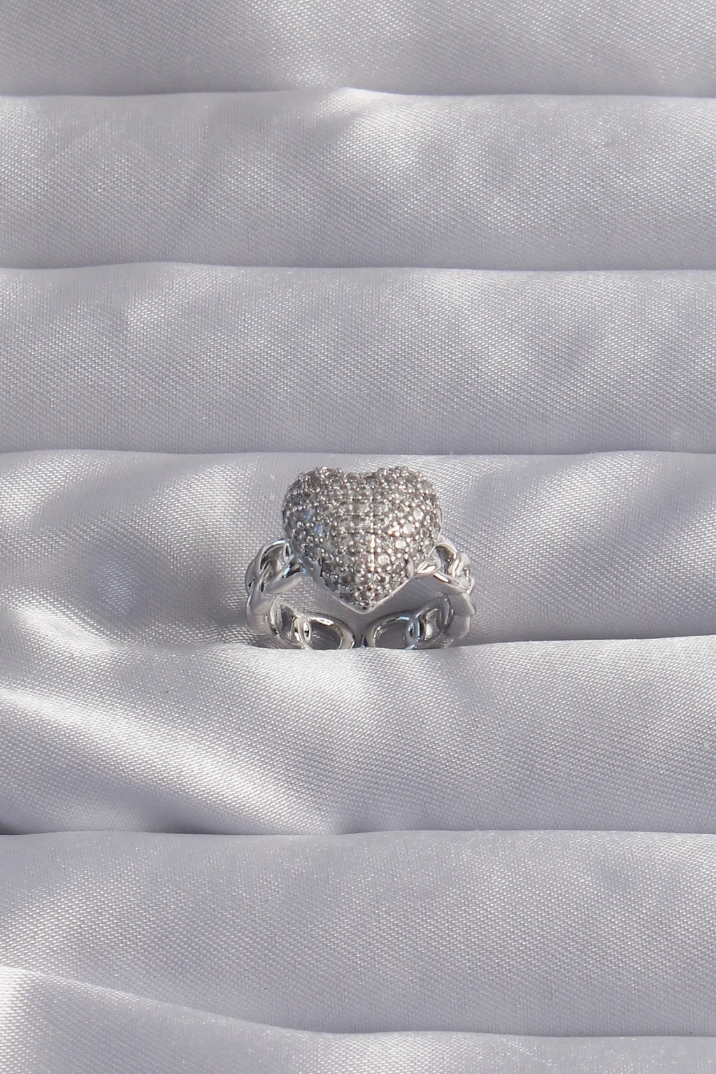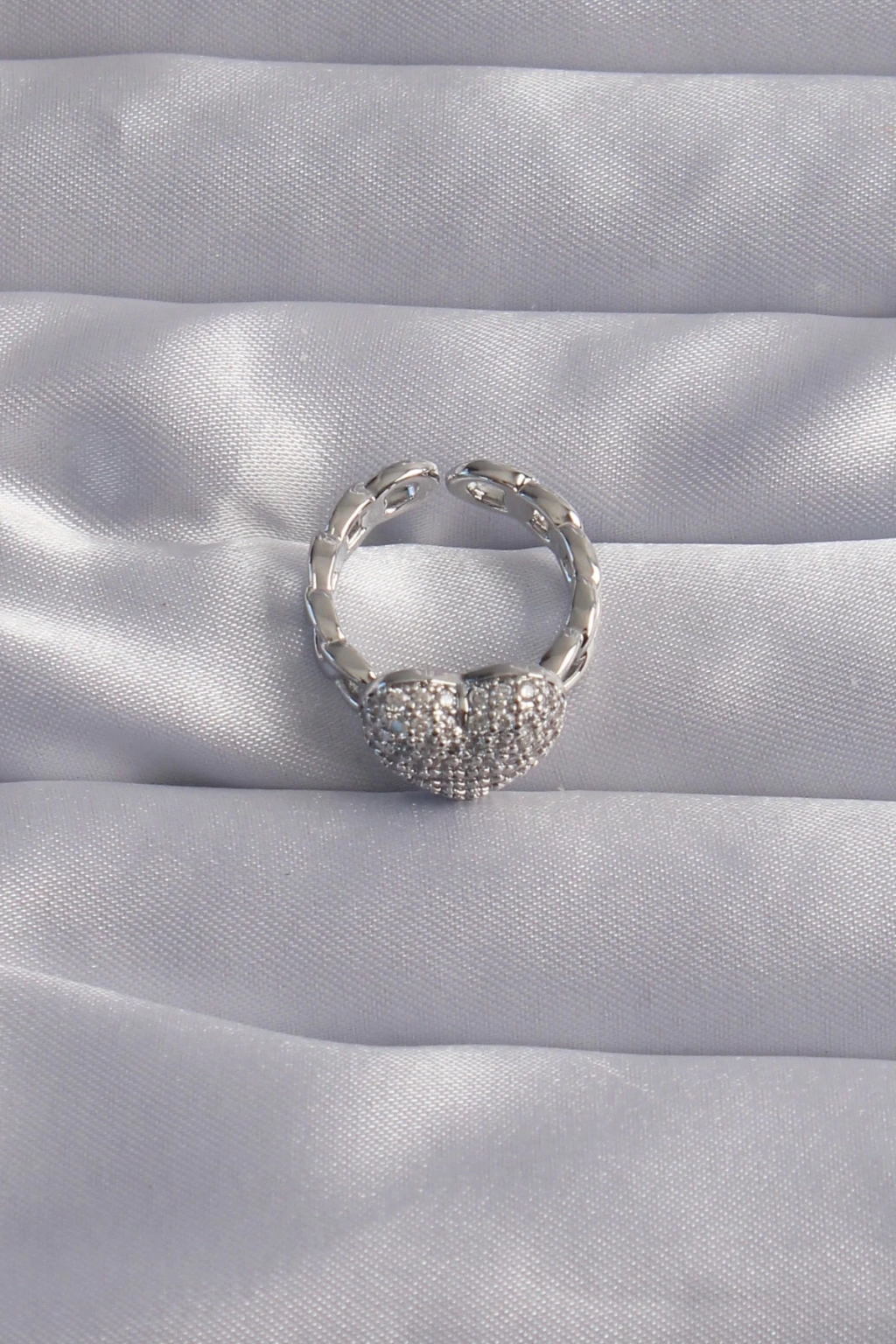 BFS Pirinç Ayarlamalı Gümüş Renk Zirkon Taşlı Bombeli Kalp Yüzük