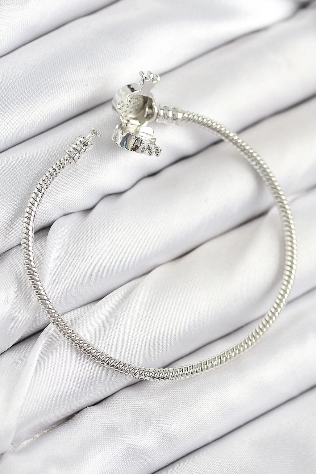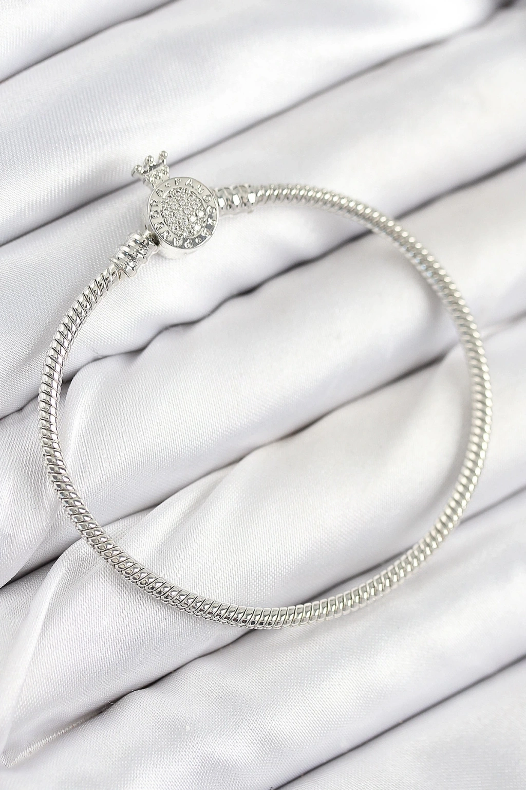 BFS Pirinç Charm Zirkon Taşlı Taç Model Gümüş Renk Kadın Bileklik