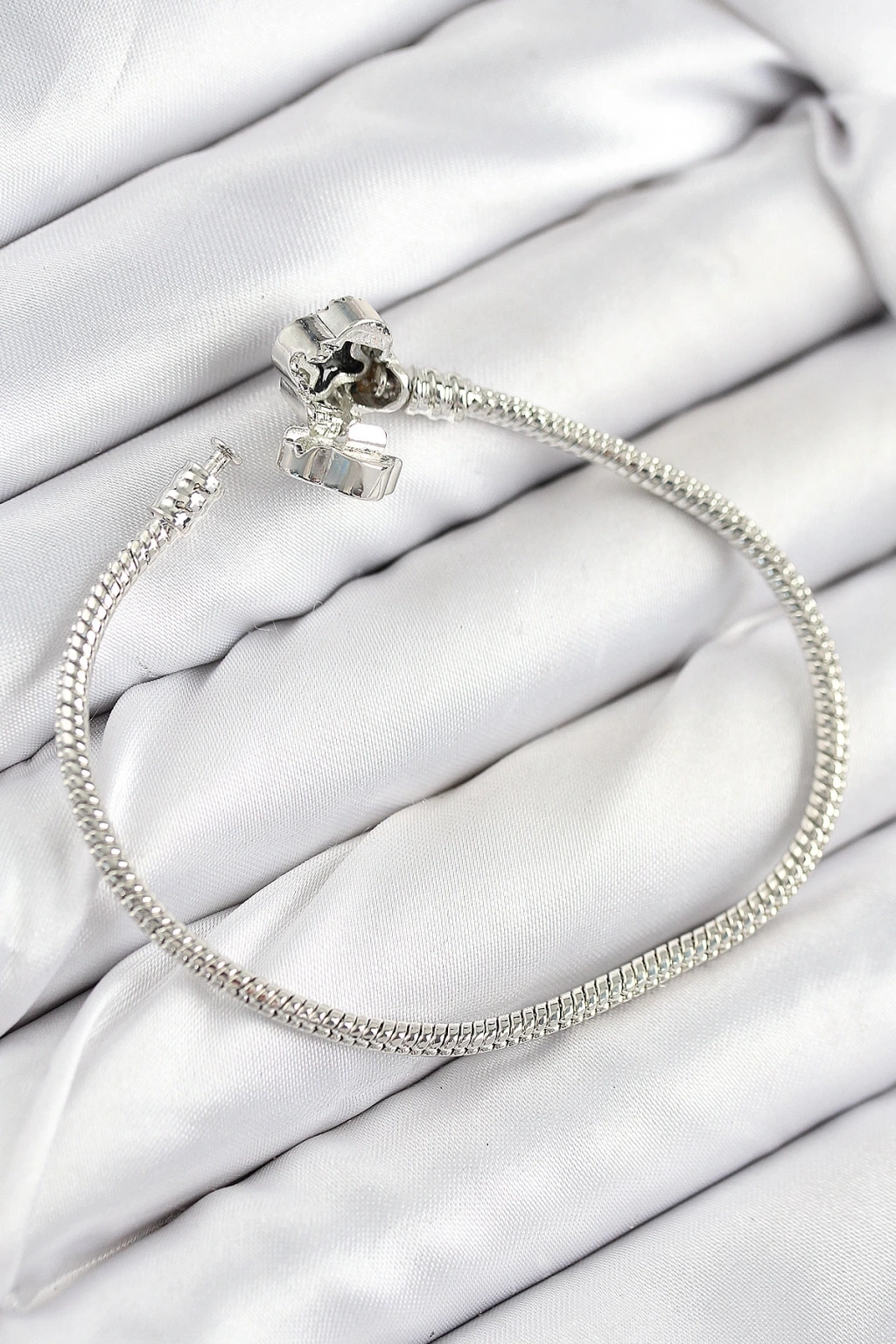 BFS Pirinç Charm Zirkon Taşlı Yonca Model Gümüş Renk Kadın Bileklik