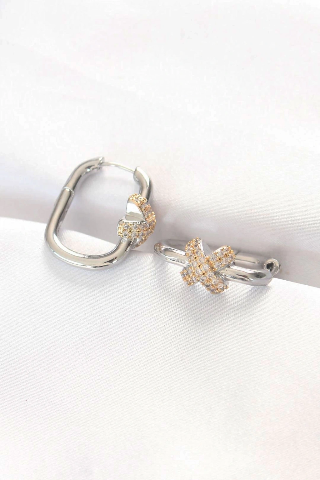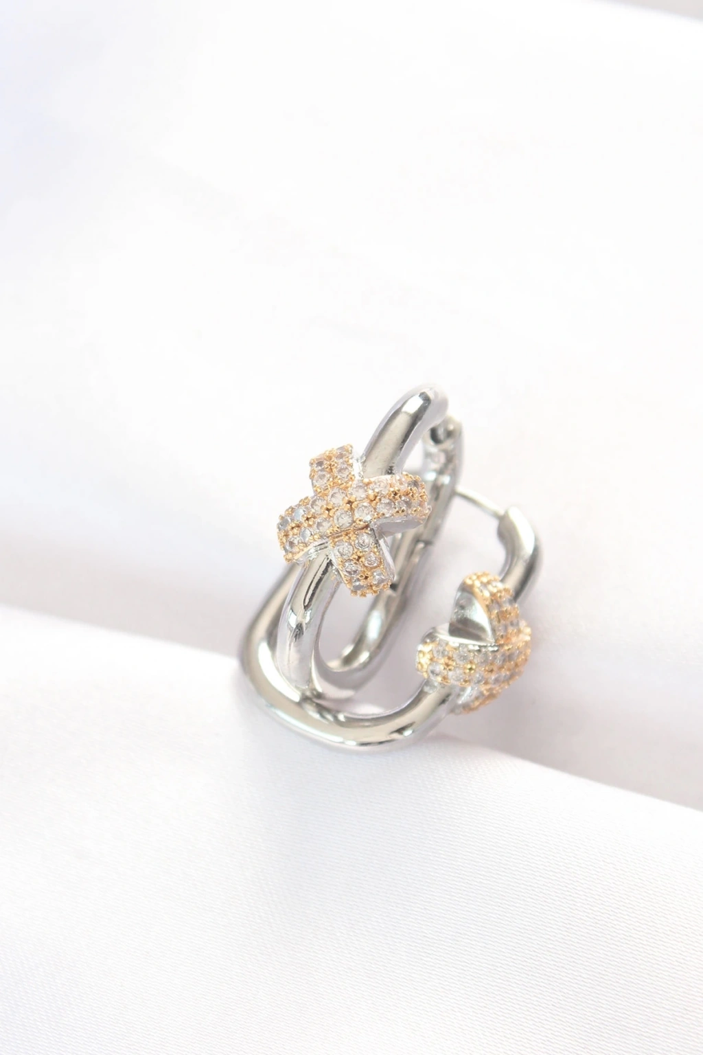 BFS Pirinç Çift Renk Taşlı X Tasarımlı Dikdörtgen Küpe