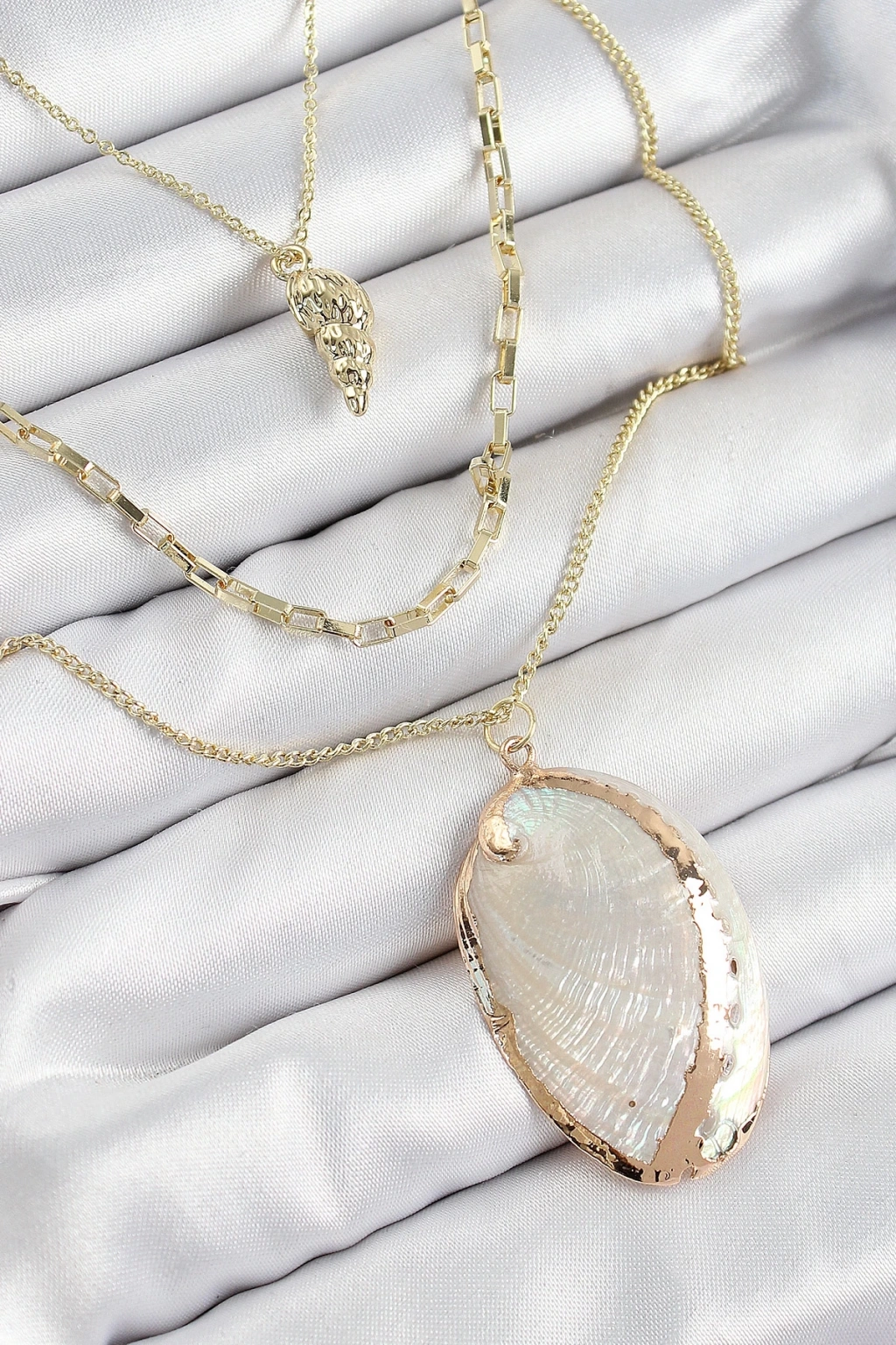 BFS Pirinç Çoklu Zincirli İstiridye Model Gold Renk Kadın Kolye