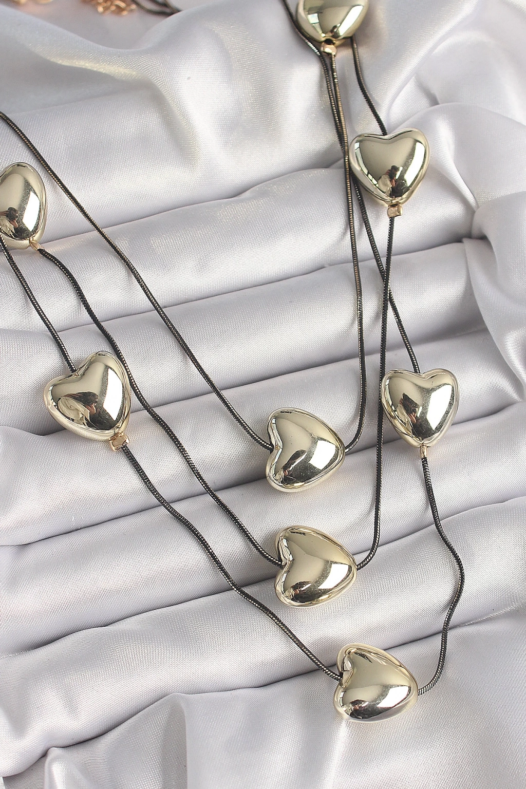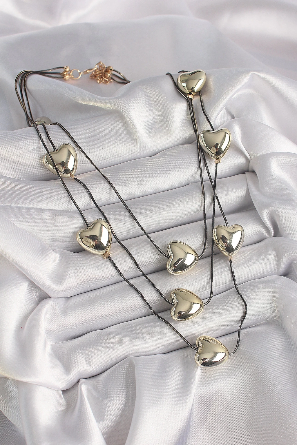 BFS Pirinç Füme Renk Zincir 3D Gold Renk Kalp Model Kadın Kolye