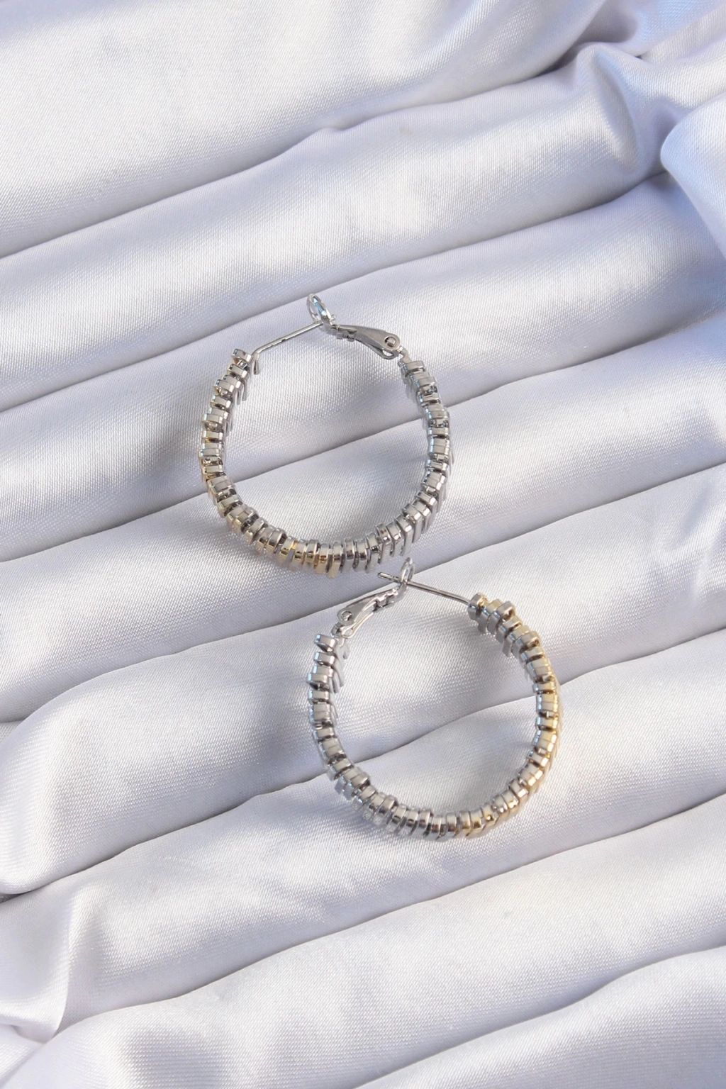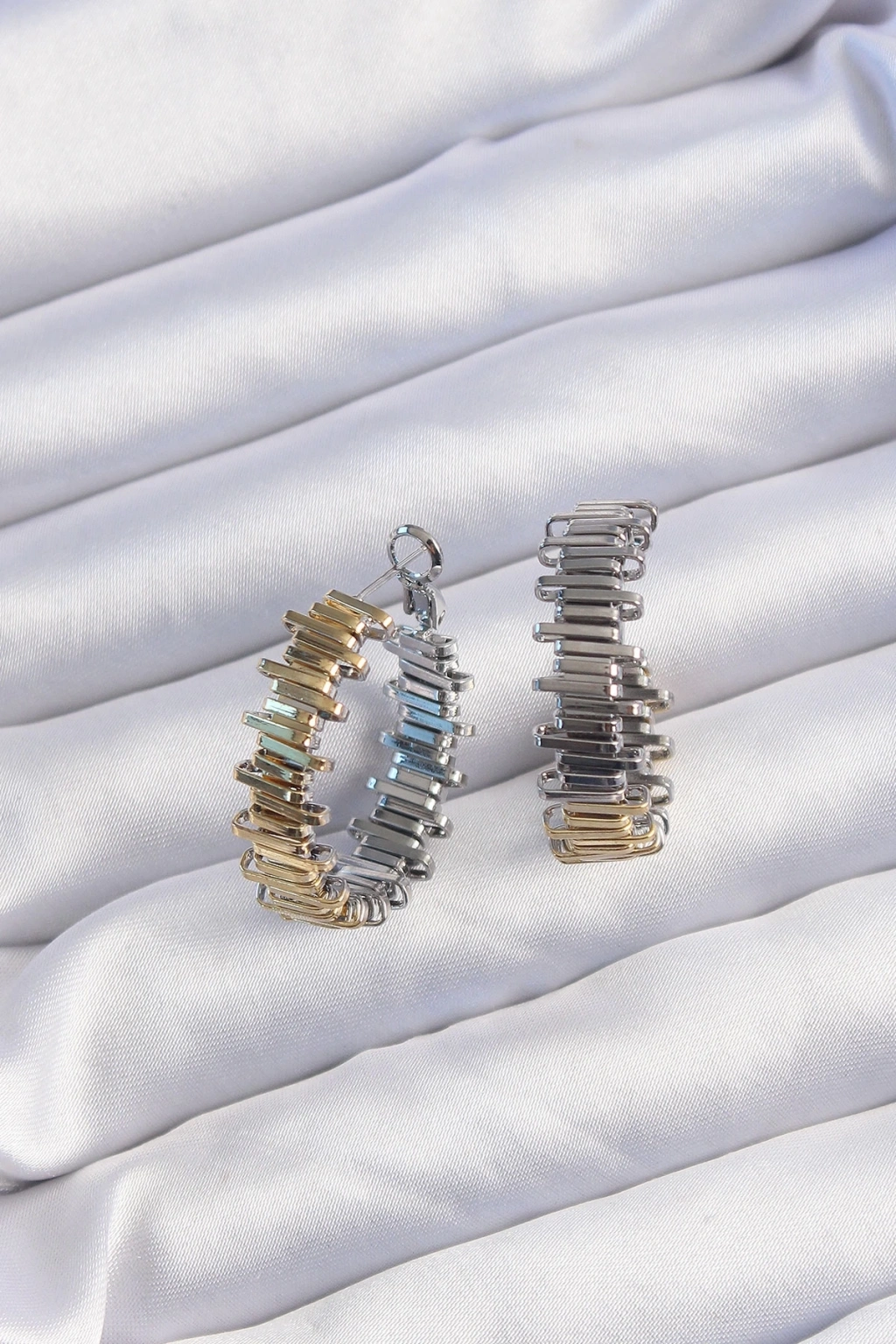 BFS Pirinç Gold Gümüş Renkli Tırtıklı Halka Küpe