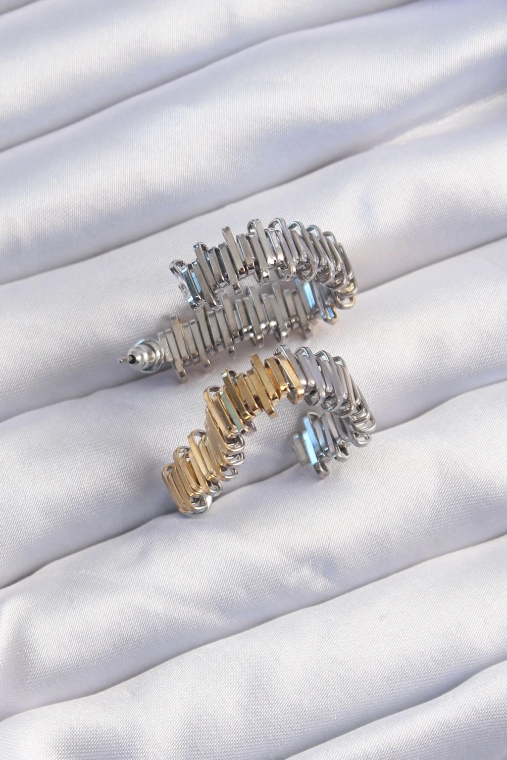 BFS Pirinç Gold Gümüş Renkli Tırtıklı Kalp Küpe