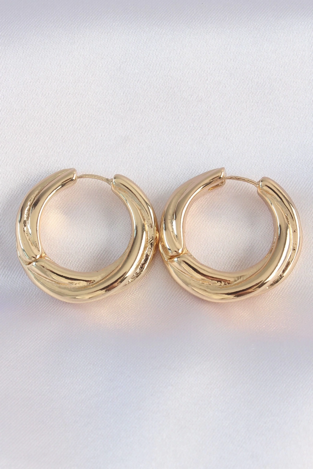 BFS Pirinç Gold Renk Asimetrik Kıvrım Küpe