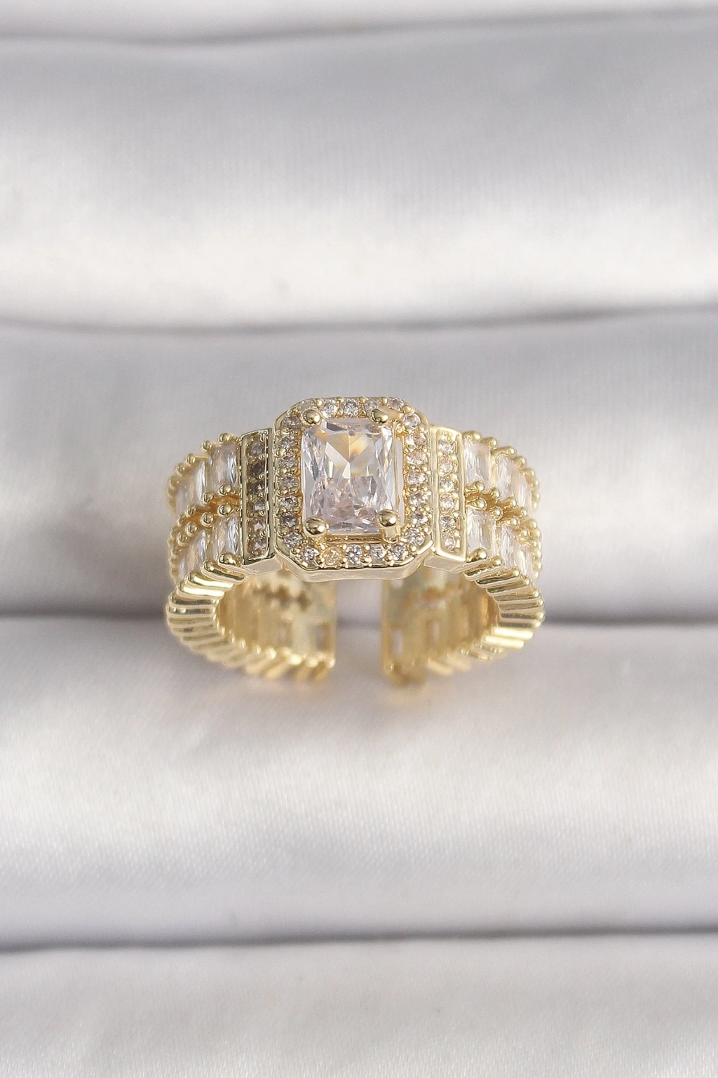 BFS Pirinç Gold Renk Ayarlanabilir Baget Zirkon Taş Model Kadın Yüzük