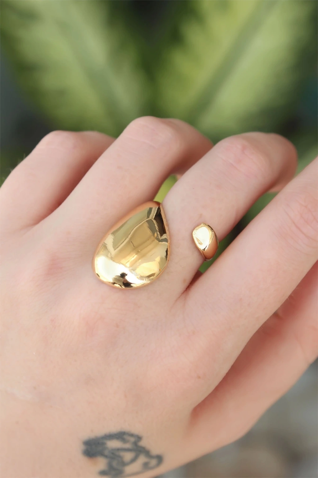 BFS Pirinç Gold Renk Ayarlanabilir İri Bombeli Yüzük