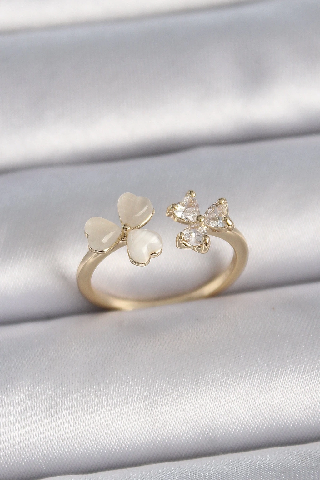 BFS Pirinç Gold Renk Ayarlanabilir Zirkon Taşlı Kalp Beyaz Mineli Model Kadın Yüzük