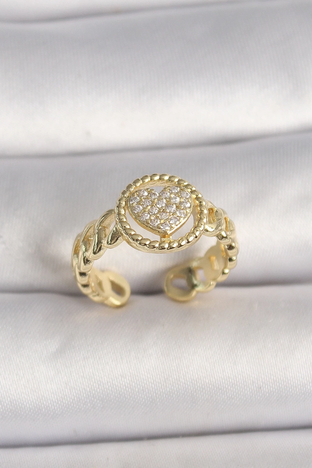 BFS Pirinç Gold Renk Ayarlanabilir Zirkon Taşlı Kalp Model Kadın Yüzük