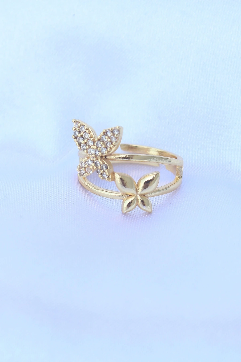 BFS Pirinç Gold Renk Ayarlanabilir Zirkon Taşlı Kelebek Yüzük