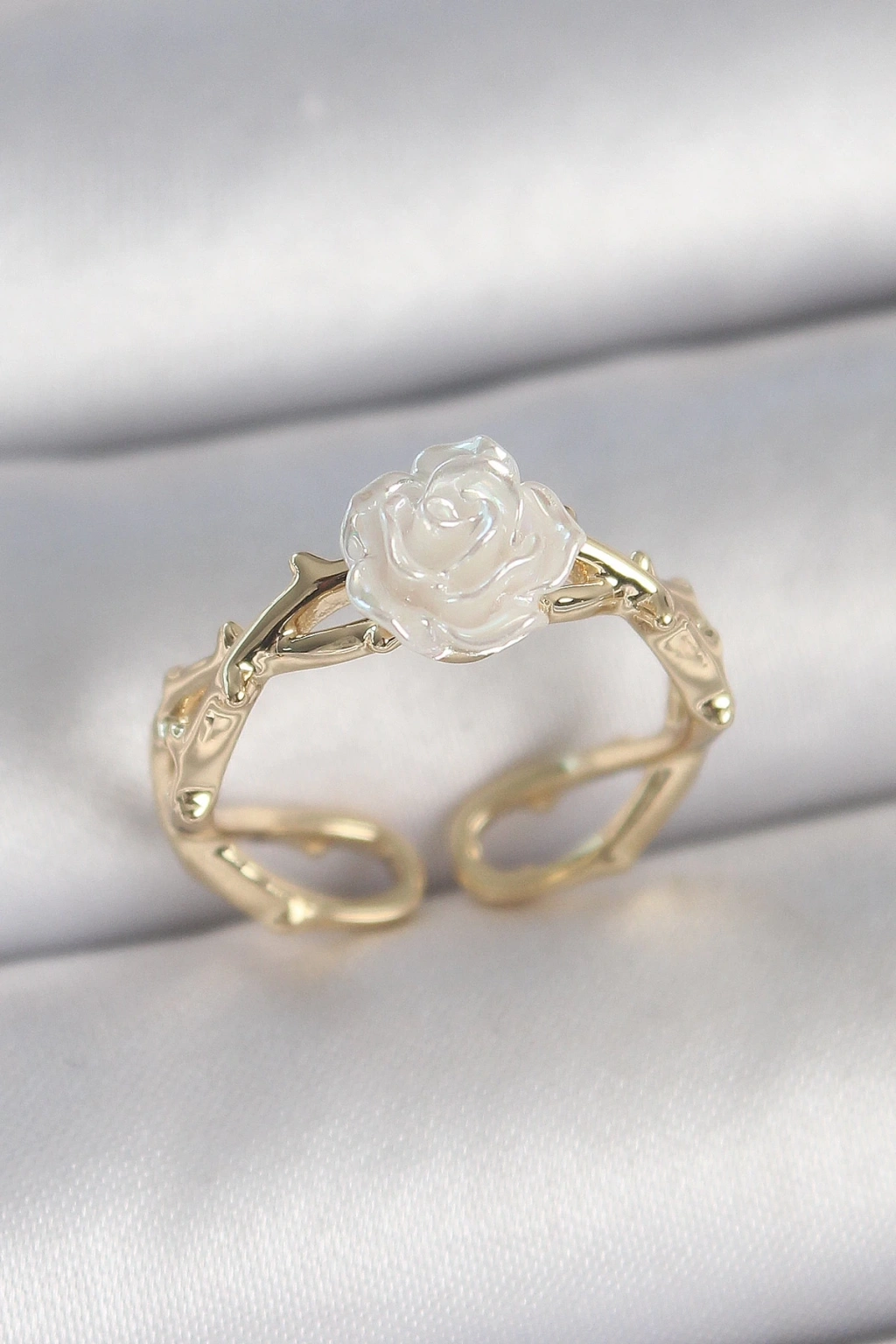 BFS Pirinç Gold Renk Beyaz Gül Model Ayarlanabilir Kadın Yüzük