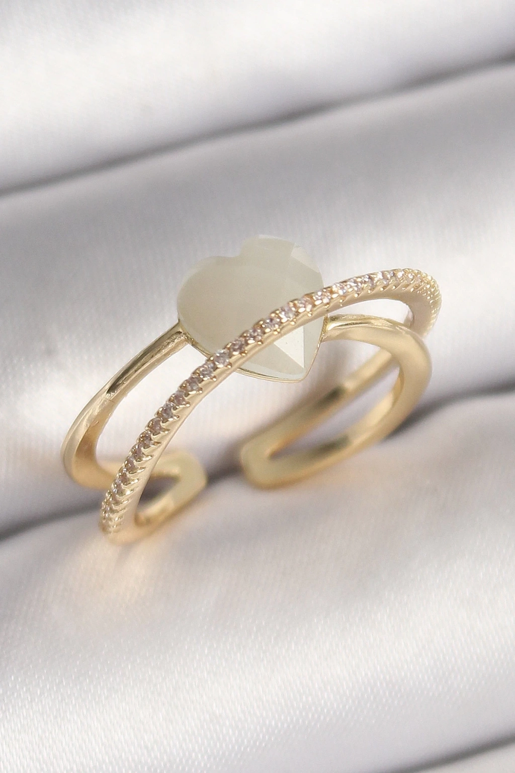 BFS Pirinç Gold Renk Beyaz Kristal Kalp Model Zirkon Taş Detay Kadın Yüzük